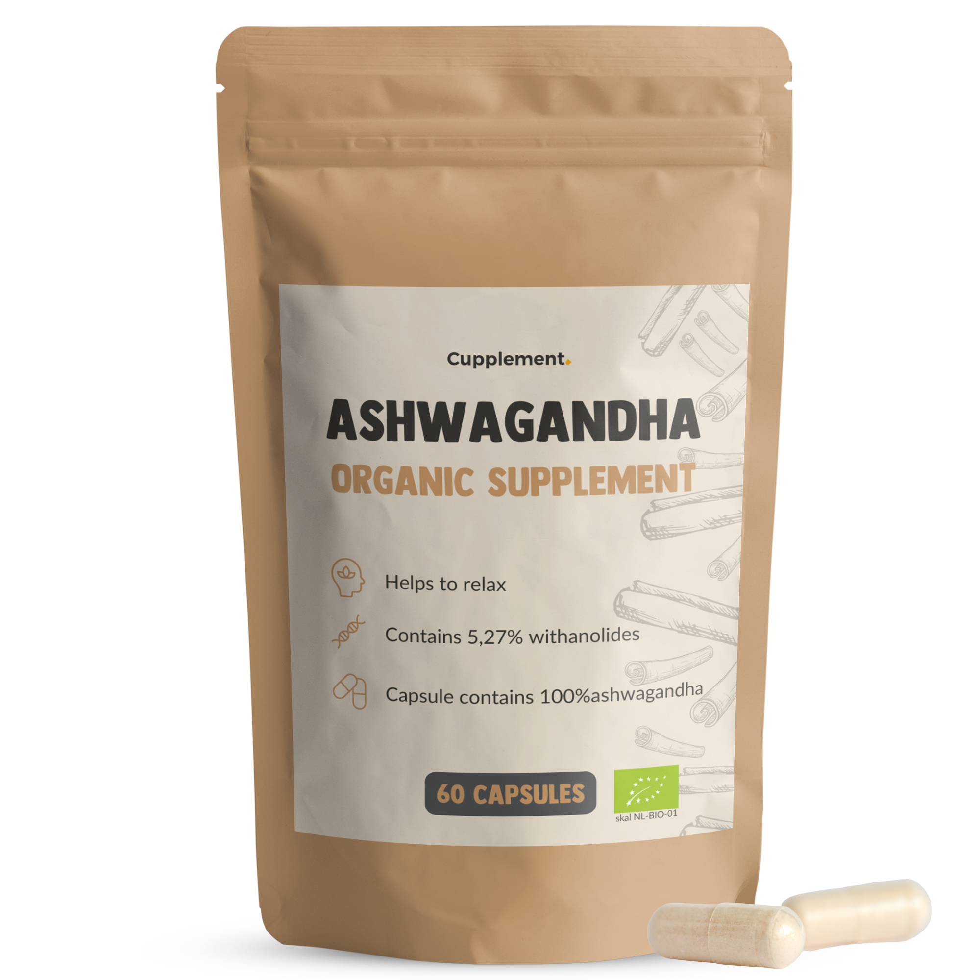 Ashwagandha 500 mg 60 kapsler. Dette kosttilskuddet fra Cupplement inneholder 500 mg økologisk ashwagandha-rotpulver per kapsel, standardisert til 5 % withanolider, noe som sikrer høy kvalitet og effektivitet. Ashwagandha, også kjent som "indisk ginseng", er en adaptogen urt tradisjonelt brukt for å støtte kroppens evne til å håndtere stress og fremme generell velvære.