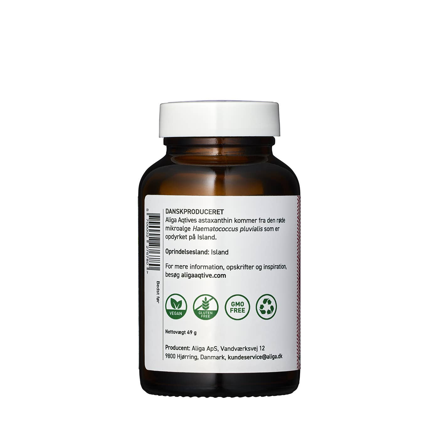 Aliga Aqtive tilbyr Astaxanthin Kapsler laget med naturlig astaxanthin fra mikroalgen Haematococcus pluvialis. Hver kapsel inneholder 8 mg ren astaxanthin, et naturlig pigment som gir laks og skalldyr deres røde farge. Dette kosttilskuddet er perfekt for alle som ønsker å dra nytte av astaxanthins kraftige antioksidantegenskaper. Astaxanthin kan bidra til å beskytte kroppen mot frie radikaler, støtte hudhelsen, og fremme generell velvære.