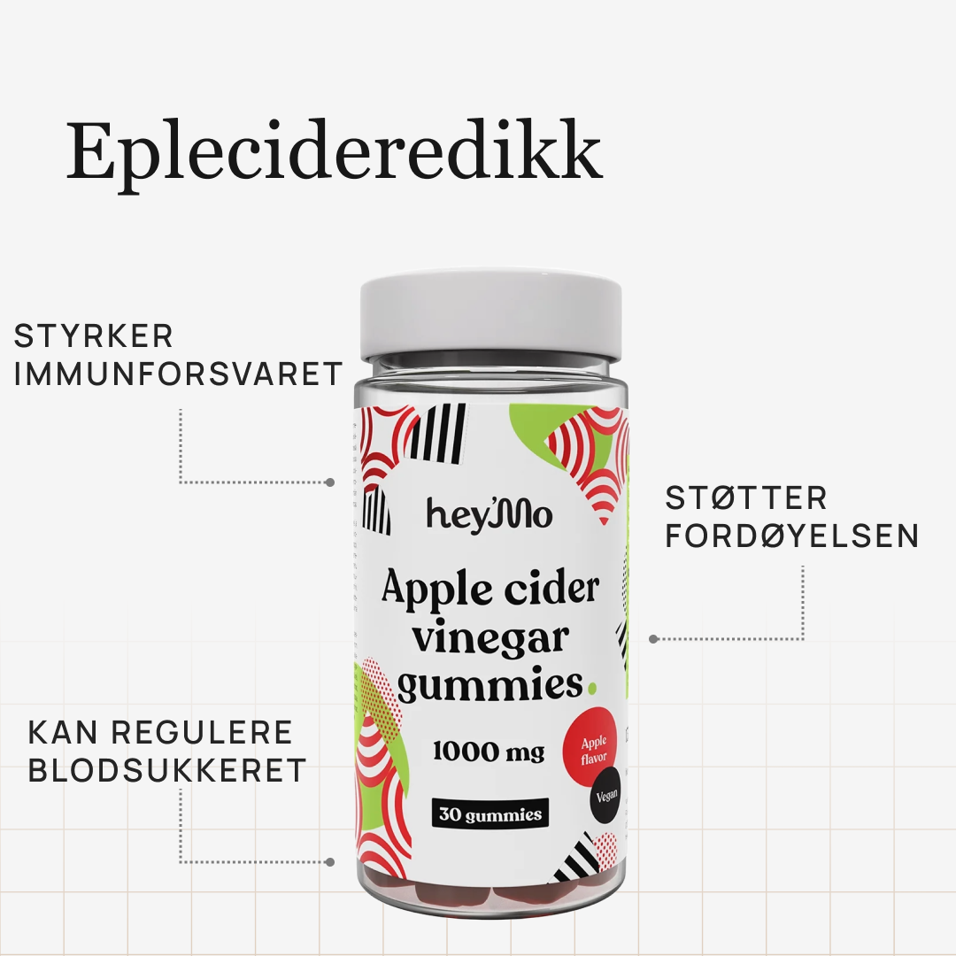 Disse velsmakende gummies kombinerer 1000 mg eplecidereddik med vitamin C og krom for å støtte stoffskiftet, blodsukkerbalansen og immunforsvaret. Perfekt for deg som ønsker bedre fordøyelse og hjelp til å regulere søtsug eller energidips etter påsken – på en enkel og god måte.