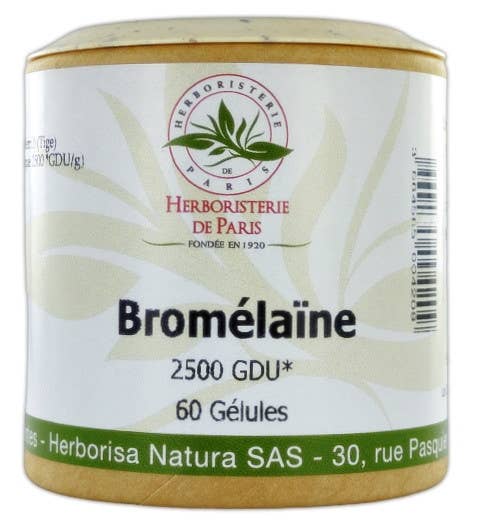 Bromelain 2500 GDU 320 mg 60 kapsler fra Herboristerie de Paris er et kosttilskudd laget av bromelain, et enzym utvunnet fra ananas. Dette produktet er kjent for sine fordøyelsesfremmende egenskaper og bidrar til å støtte en sunn fordøyelse. Bromelain kan også hjelpe med å redusere betennelse og fremme god tarmfunksjon, noe som gjør det til et nyttig tilskudd for de som ønsker bedre fordøyelseshelse.