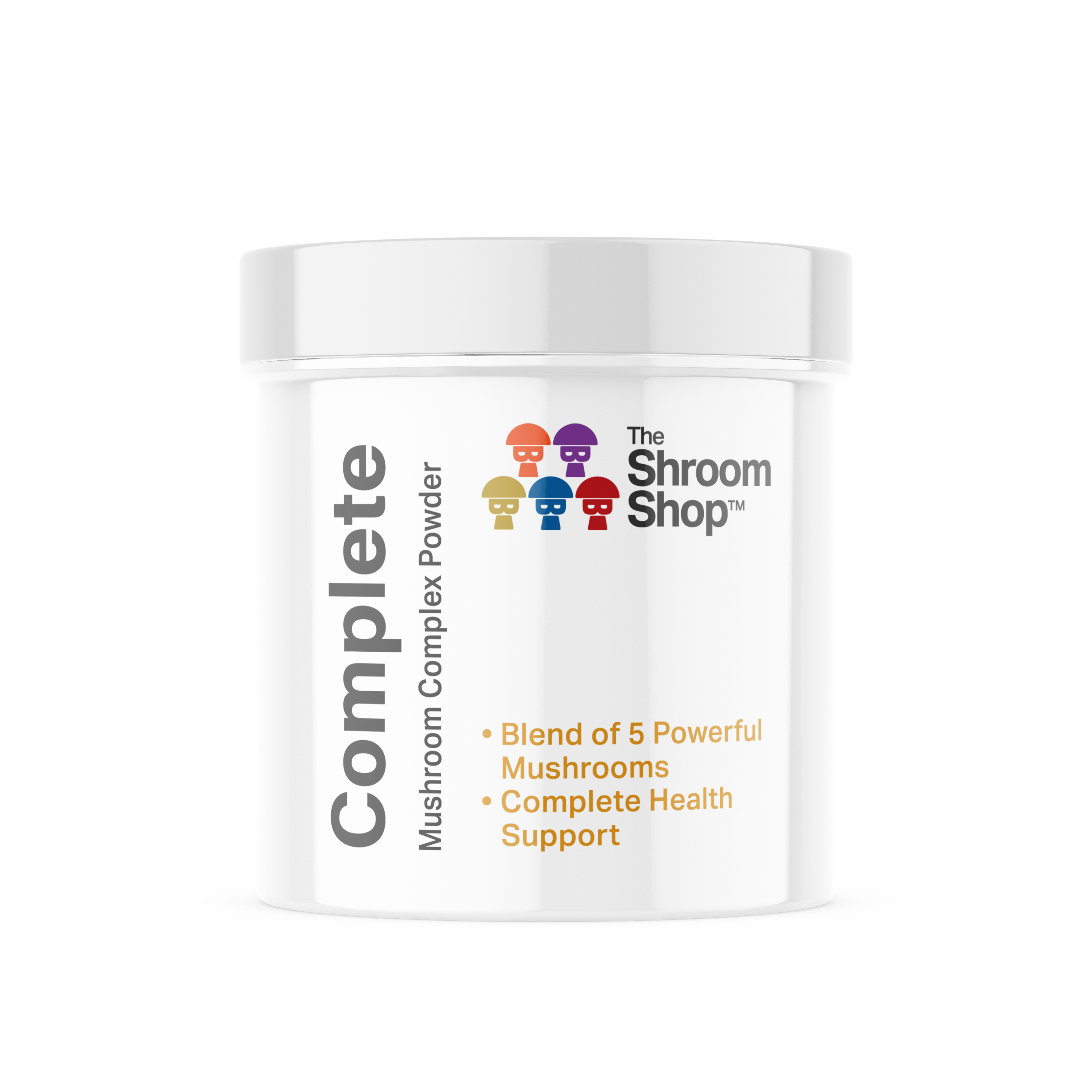 Complete Mushroom Complex pulver fra The Shroom Shop kombinerer fem kraftige sopp-ekstrakter: Lion's Mane, Turkey Tail, Reishi, Chaga og Cordyceps. Hver dose på 3750 mg gir en balansert blanding av polysakkarider og helsebringende næringsstoffer. Uten fyllstoffer eller kjemikalier, tilbyr dette produktet ren, potent soppenergi for en naturlig helseboost.