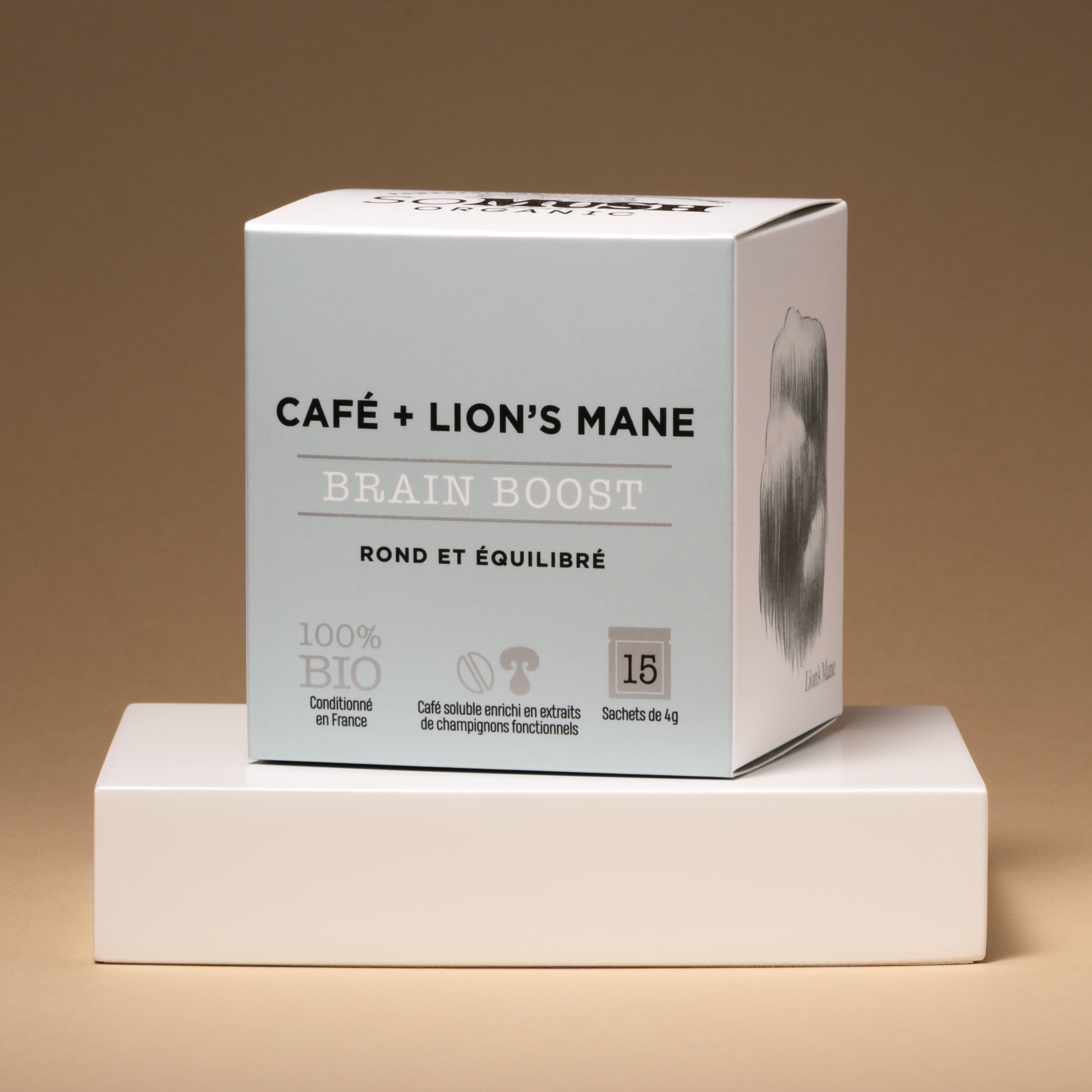 Økologisk Arabica-kaffe, økologisk lion’s mane-sopp (Hericium erinaceus).