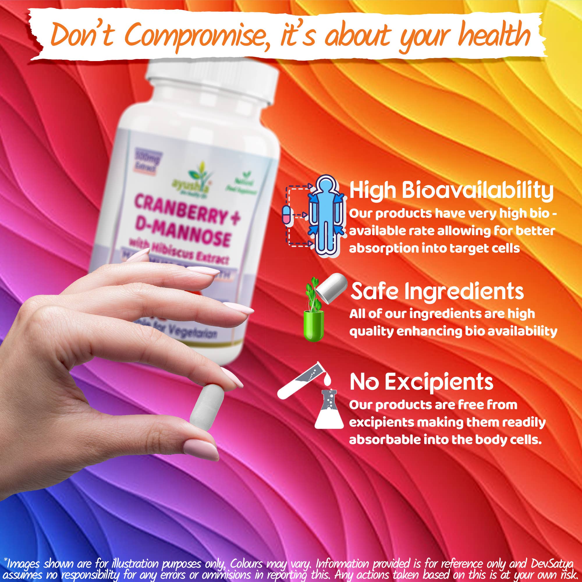 Tranebær med D-Mannose og Hibiskus 60 kapsler fra Aushadh er et nøye formulert kosttilskudd designet for å støtte urinveishelsen. Denne unike kombinasjonen av tranebærekstrakt, D-Mannose og hibiskusekstrakt arbeider synergistisk for å fremme en sunn blærefunksjon og redusere risikoen for urinveisinfeksjoner (UVI). Aushadhs forpliktelse til kvalitet sikrer at hver kapsel inneholder rene ingredienser uten unødvendige tilsetningsstoffer, noe som gir et naturlig alternativ for de som søker å opprettholde urinveishelsen.