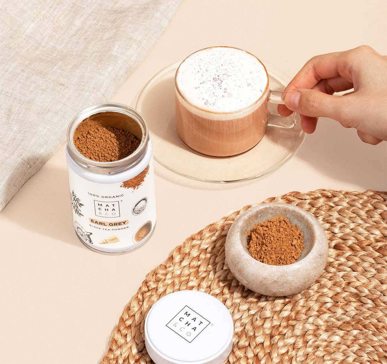 Earl Grey Tea 100g, Dette unike Earl Grey teet fra Matcha & Co kombinerer den rike smaken av matcha med den klassiske, aromatiske smaken av bergamot. Med sin naturlige energiøkning og balanserte smak, gir dette teet et forfriskende alternativ til kaffe og andre teer. Matcha & Co. benytter høy kvalitet, økologisk matcha, som gir en kraftig dose antioksidanter og øker mental klarhet og fokus.