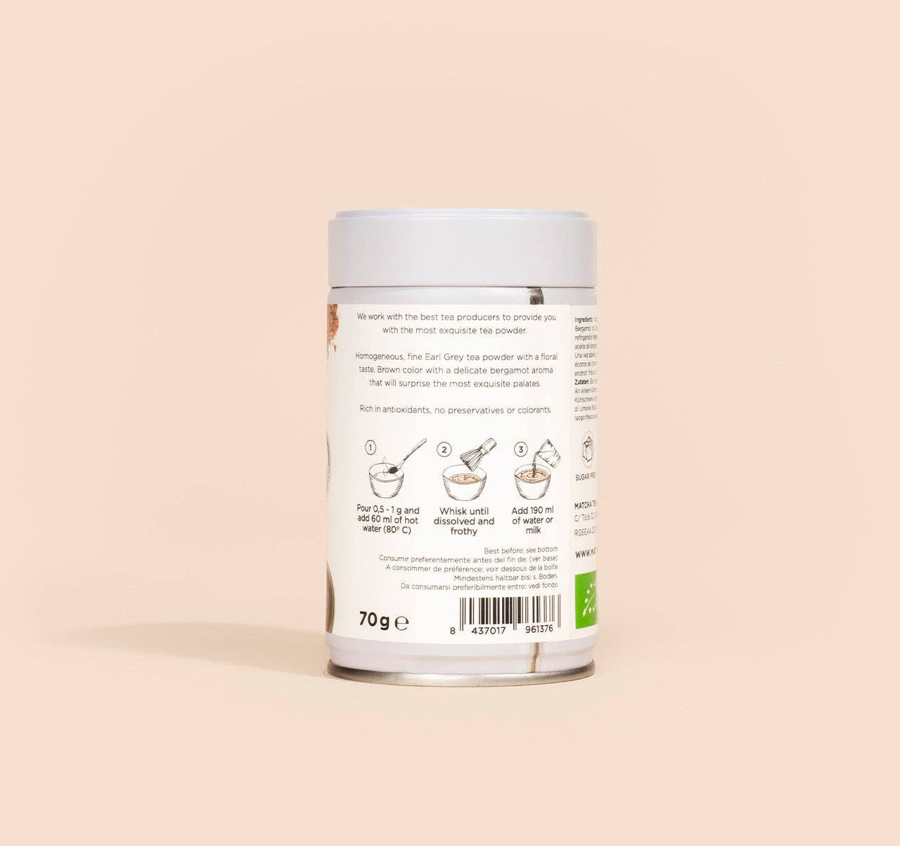 Bland en teskje Earl Grey Matcha Tea med varmt vann (ca. 70–80°C). Rør godt og nyt denne energigivende drikken på morgen eller ettermiddag.