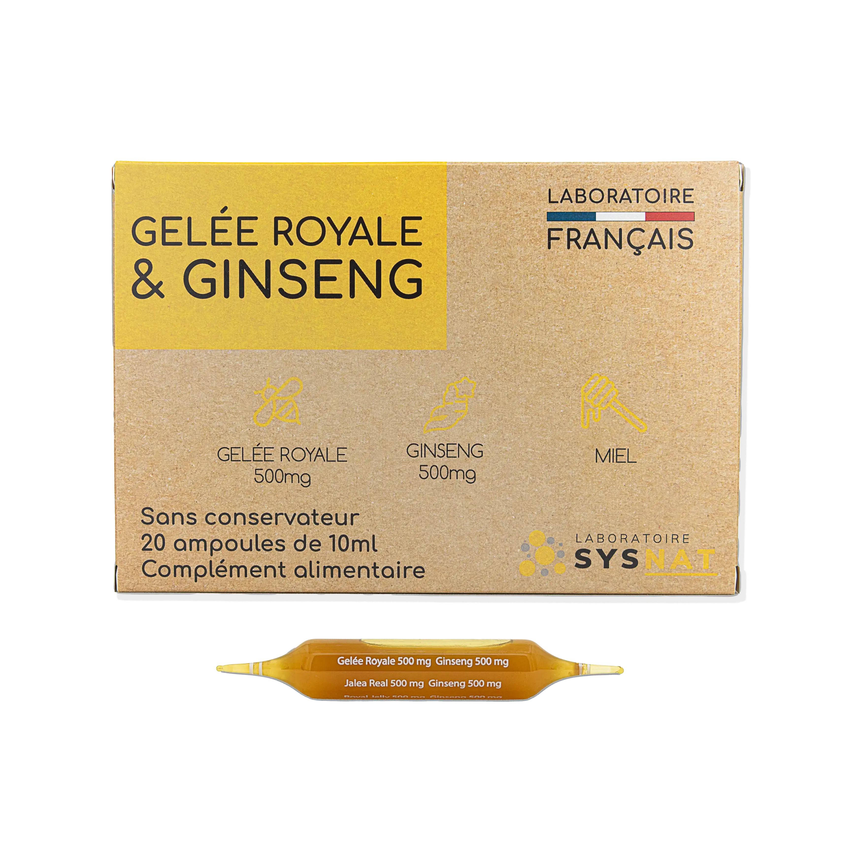 Ginseng og Gelé Royal – 20 ampuller à 10 ml fra SYSNAT er et kosttilskudd som kombinerer ren ginseng-ekstrakt med økologisk gelé royal. Hver ampulle inneholder 1000 mg ginseng-ekstrakt og 500 mg gelé royal, noe som gjør dette produktet unikt ved å kombinere to kraftfulle ingredienser kjent for å støtte kroppens vitalitet og immunforsvar.