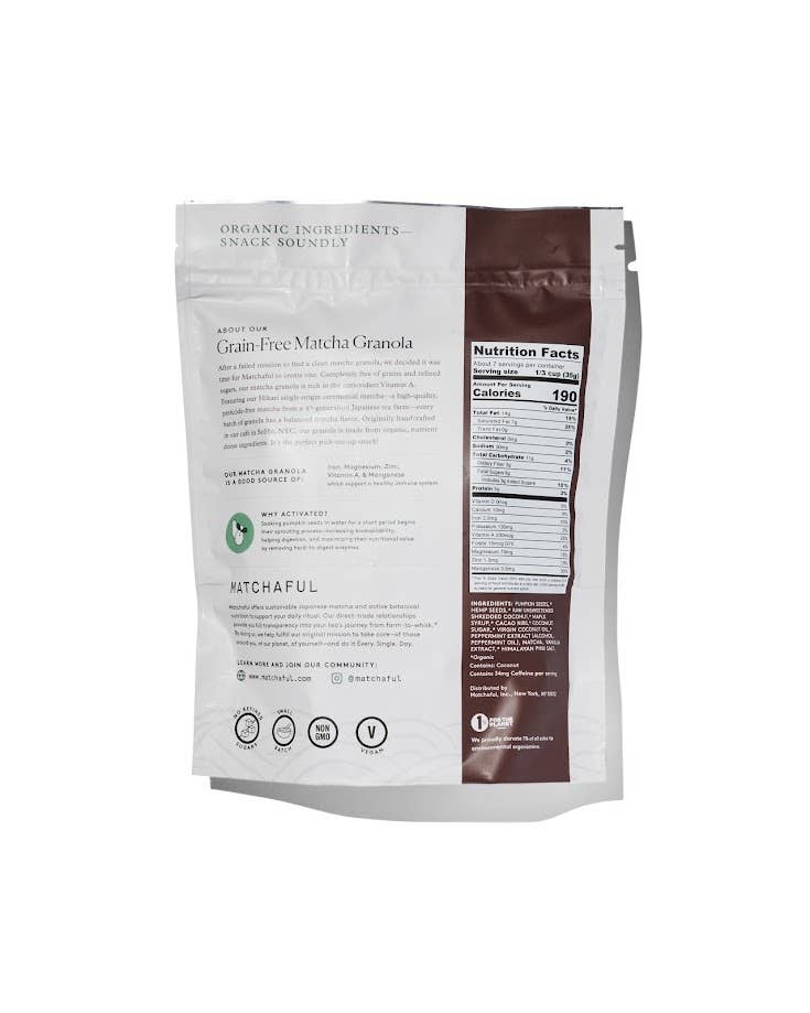Nyt 1-2 ss Activated Matcha Granola som en snack, eller legg det til din favoritt-yoghurt eller smoothie for ekstra energi og næringsstoffer.