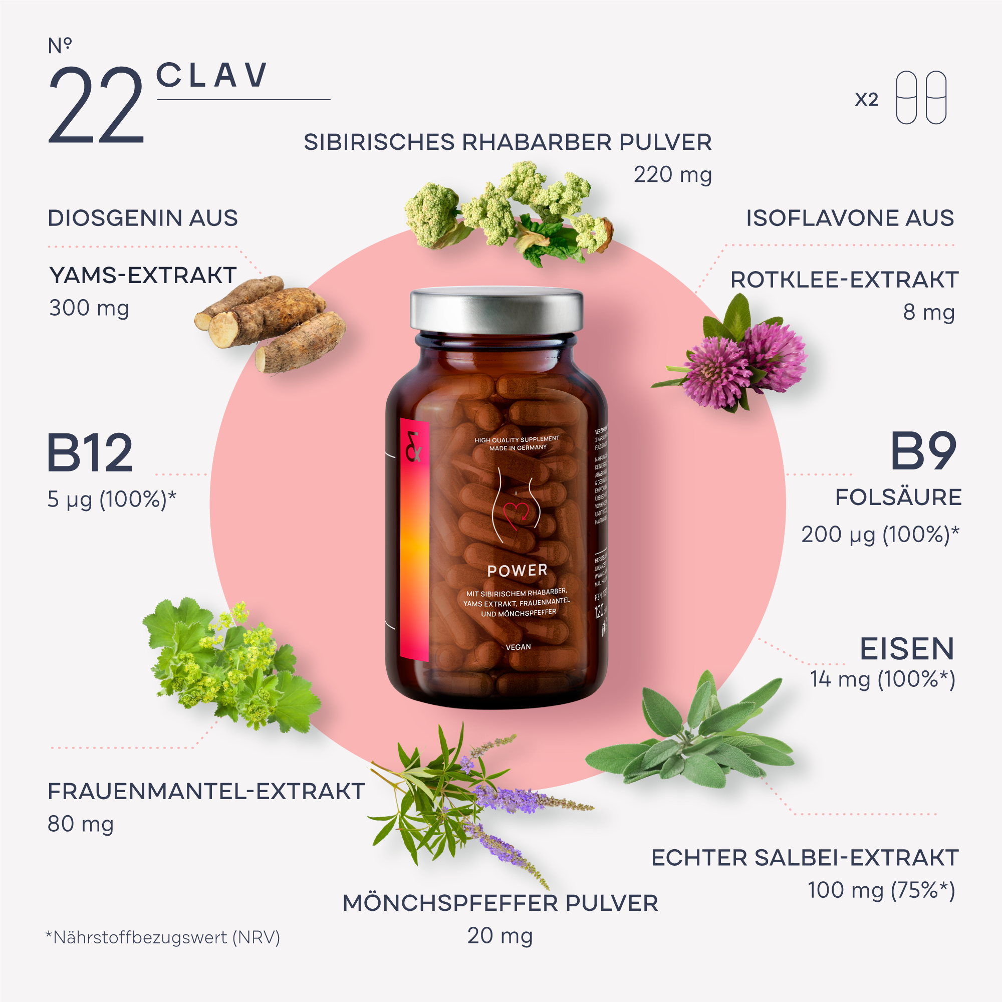 CLAV er et tysk selskap som spesialiserer seg på naturlige og veganske kosttilskudd. De legger vekt på bærekraft og bruker ikke-genmodifiserte ingredienser uten unødvendige tilsetningsstoffer. Produktene deres er utviklet for å støtte ulike aspekter av helse og velvære.