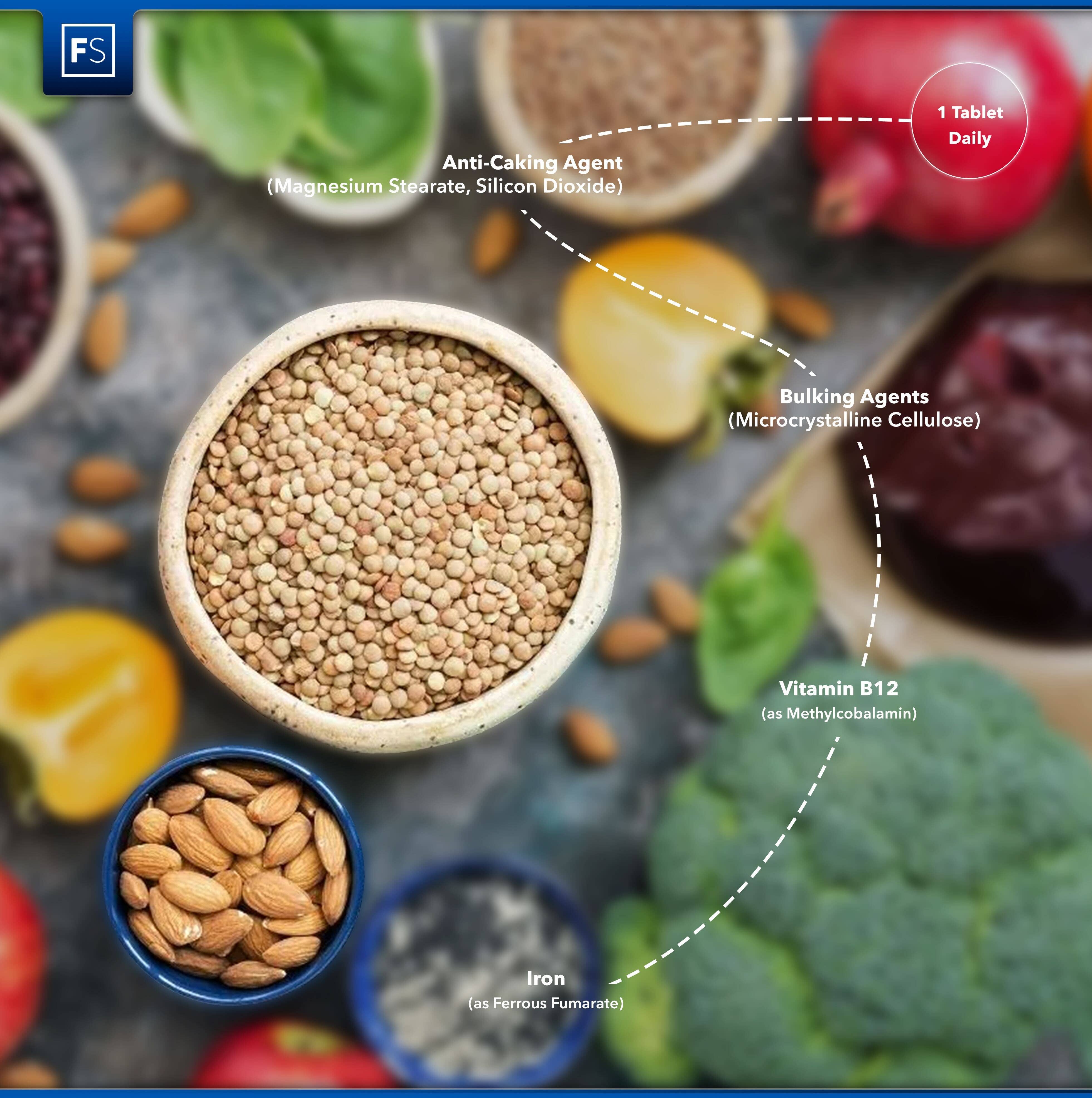 Øker energi og utholdenhet: Jern bidrar til oksygenlevering til musklene, og vitamin B12 støtter energiproduksjonen ved å være nødvendig for ATP-produksjon, som gir økt utholdenhet og reduserer tretthet. Dette er spesielt viktig for å opprettholde energi under fysisk aktivitet og daglige gjøremål.