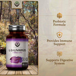 Lactobacillus salivarius er en naturlig forekommende bakterie i menneskets spytt og mage-tarmkanal. Den bidrar til å opprettholde en balansert tarmflora, noe som kan forbedre fordøyelsen og redusere gastrointestinalt ubehag. Som probiotikum støtter den kroppens naturlige forsvar mot patogener og infeksjoner, og bidrar til å hemme veksten av skadelige bakterier i munnhulen, noe som kan føre til bedre tannhelse.