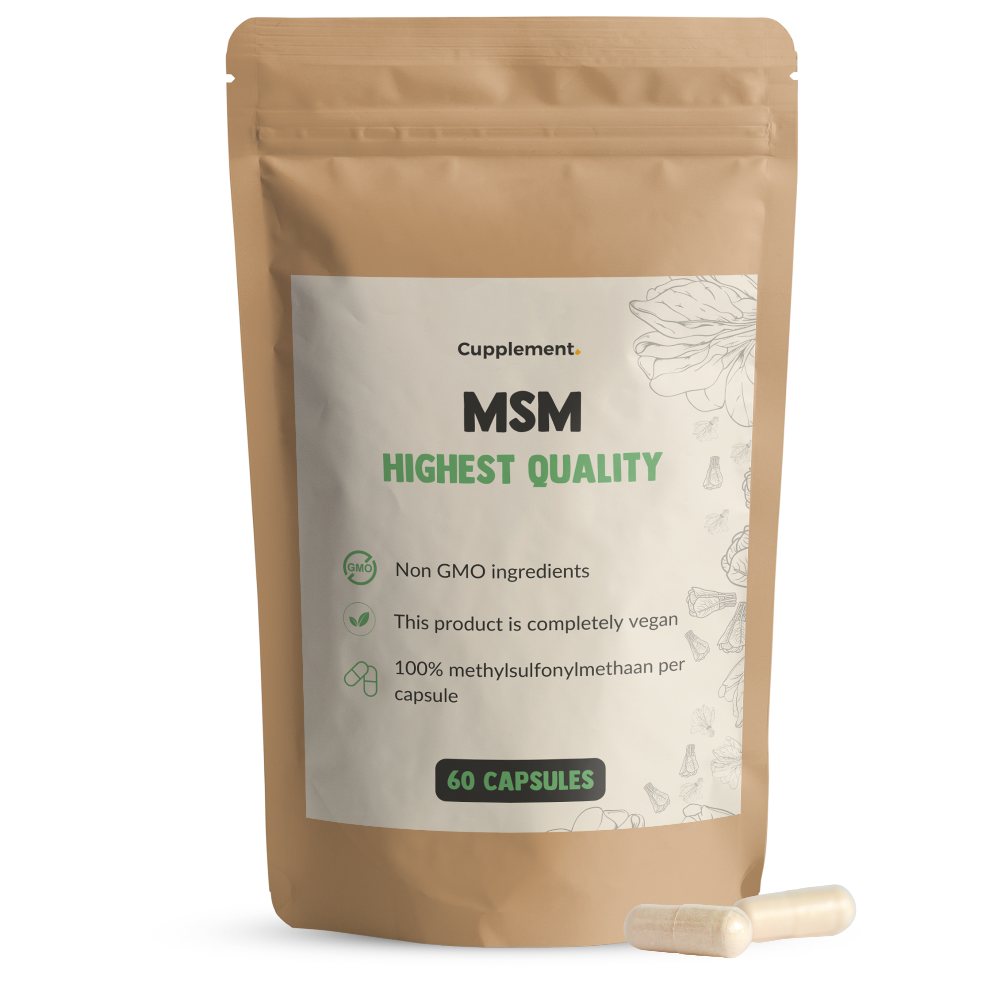 MSM 500 mg 60 kapsler. Dette kosttilskuddet fra Cupplement inneholder 500 mg metylsulfonylmetan (MSM) per kapsel, en naturlig forekommende organisk svovelforbindelse kjent for sine mange helsefordeler. MSM finnes naturlig i små mengder i visse matvarer, men tilskudd kan være nødvendig for å oppnå terapeutiske doser.