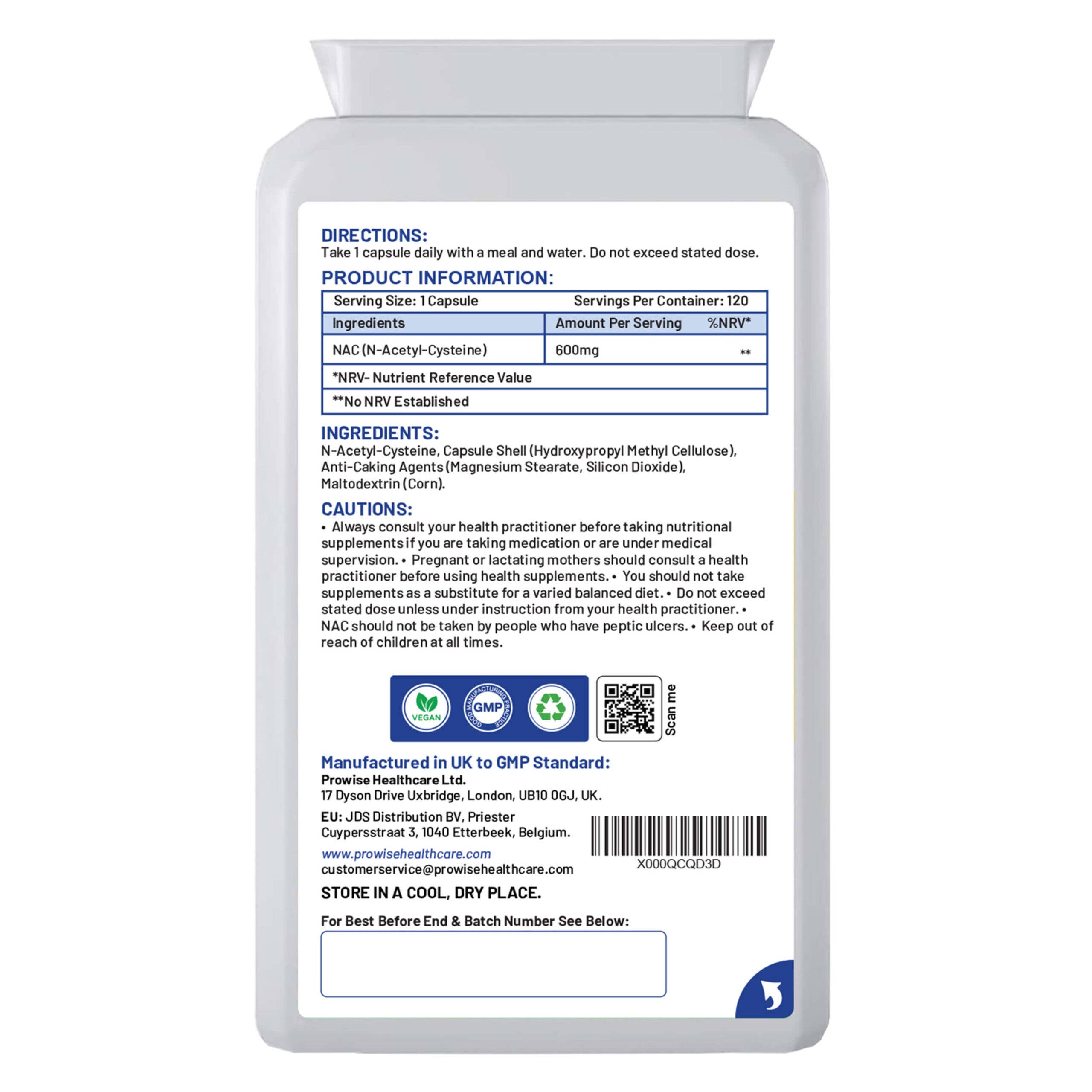Hver kapsel inneholder 600 mg N-Acetyl-Cysteine, formulert for å gi støtte til kroppens forsvarssystemer. Med 120 kapsler per pakke tilbyr dette produktet en praktisk og langvarig løsning for å støtte generell helse og velvære, samtidig som det kan bidra til å optimalisere kroppens evne til å prestere under trening. Produktet er produsert i Storbritannia under høye kvalitetsstandarder, noe som sikrer renhet og pålitelighet i hver kapsel.