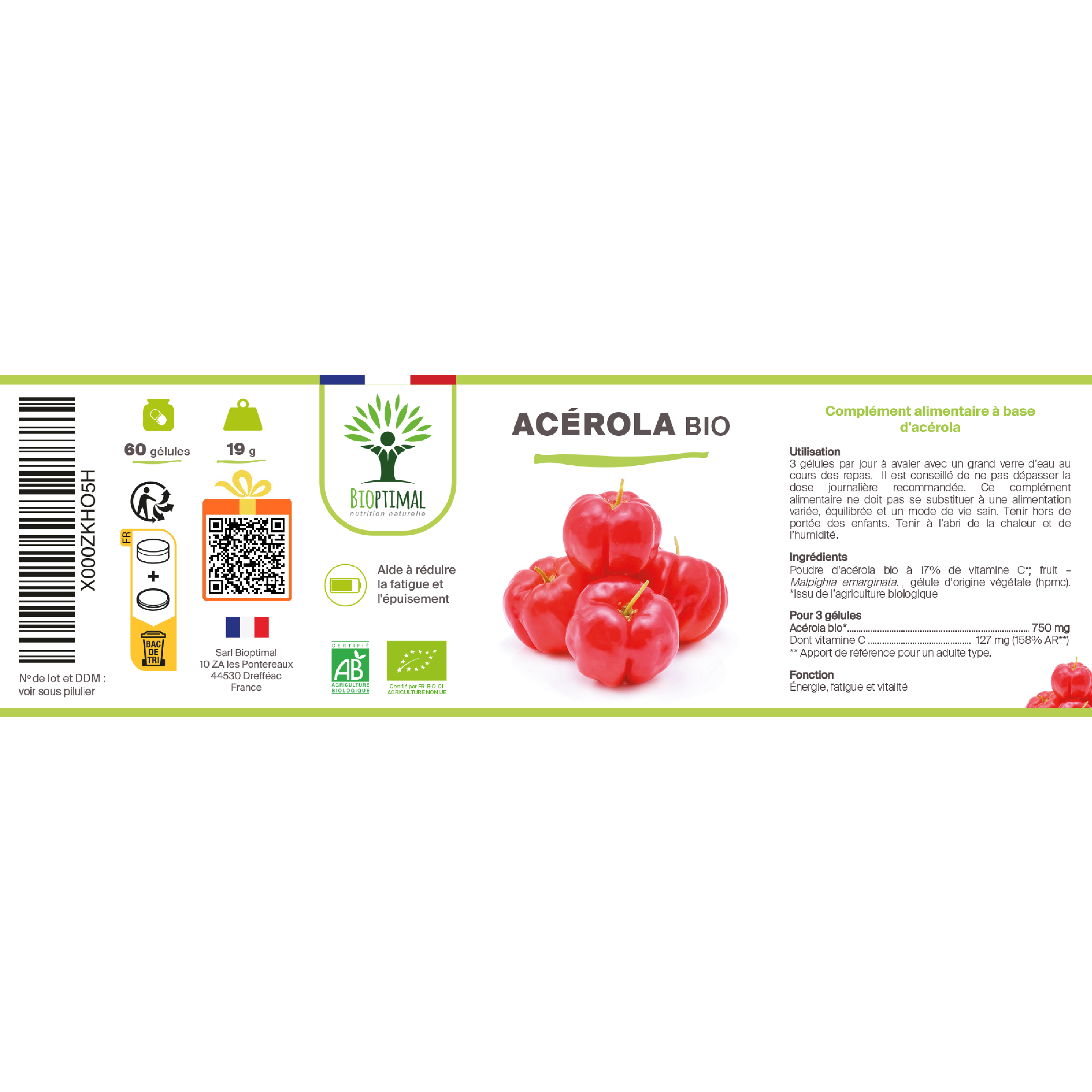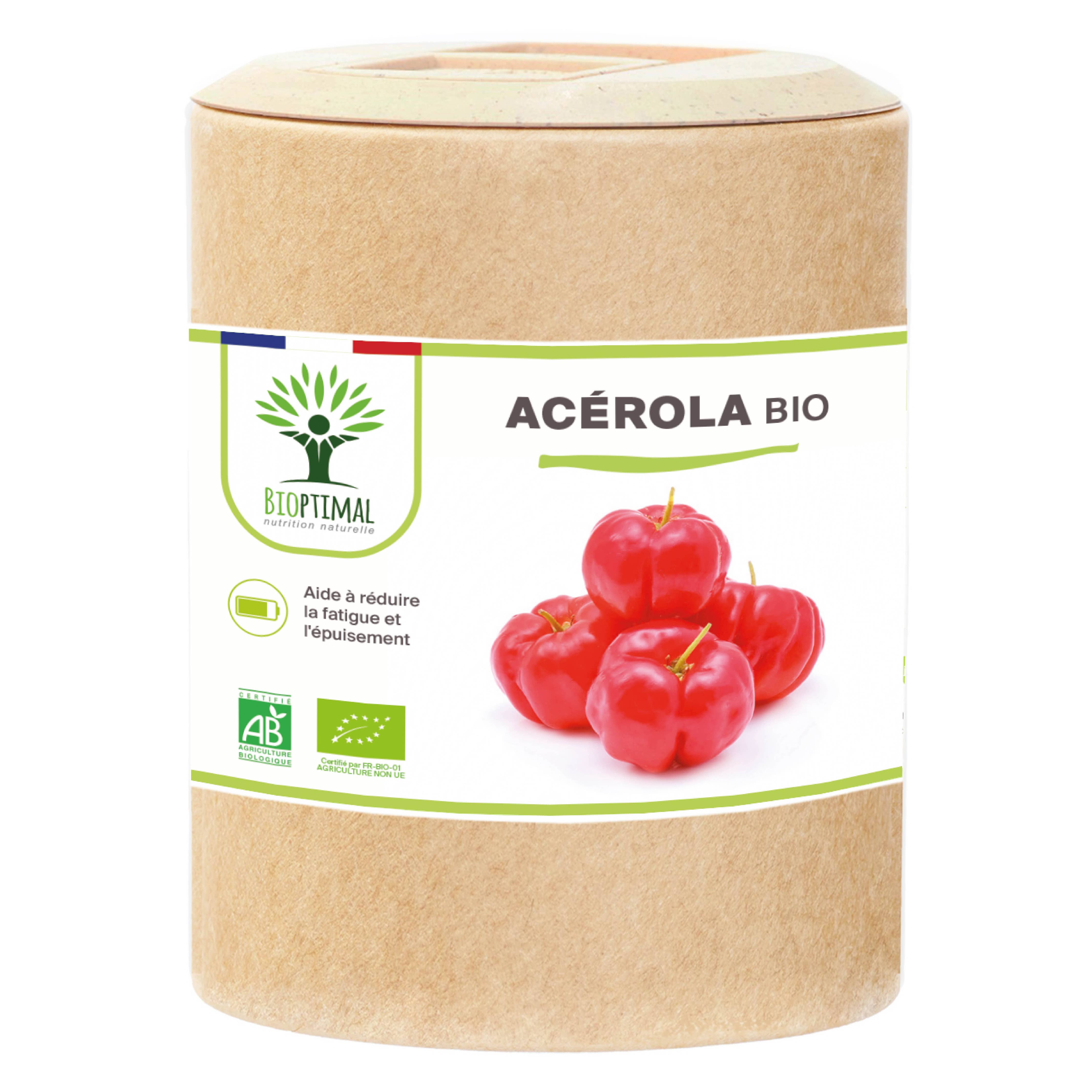 Økologisk Acerola 60 kapsler. Dette kosttilskuddet fra Bioptimal er laget med 100% økologisk acerola, kjent for sitt høye innhold av vitamin C. Kapslene er plantebaserte, glutenfrie og uten kunstige tilsetningsstoffer. Acerola støtter immunsystemet, bekjemper tretthet og kan bidra til å forbedre jernopptaket i kroppen.