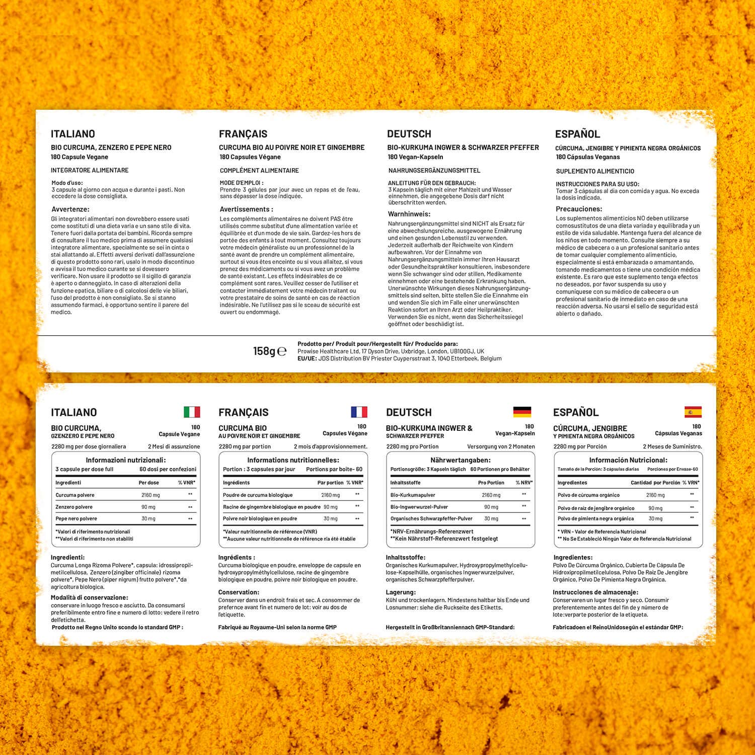 Prowise sin økologiske gurkemeie med ingefær og svart pepper er formulert for å støtte kroppens velvære på en naturlig og effektiv måte. Med en daglig dose på 2280 mg fordelt på tre kapsler, inneholder hver porsjon 2160 mg gurkemeie, 90 mg ingefær og 30 mg svart pepper. Denne kombinasjonen sikrer ikke bare høy kvalitet, men også økt opptak og effekt av curcumin, den aktive ingrediensen i gurkemeie.