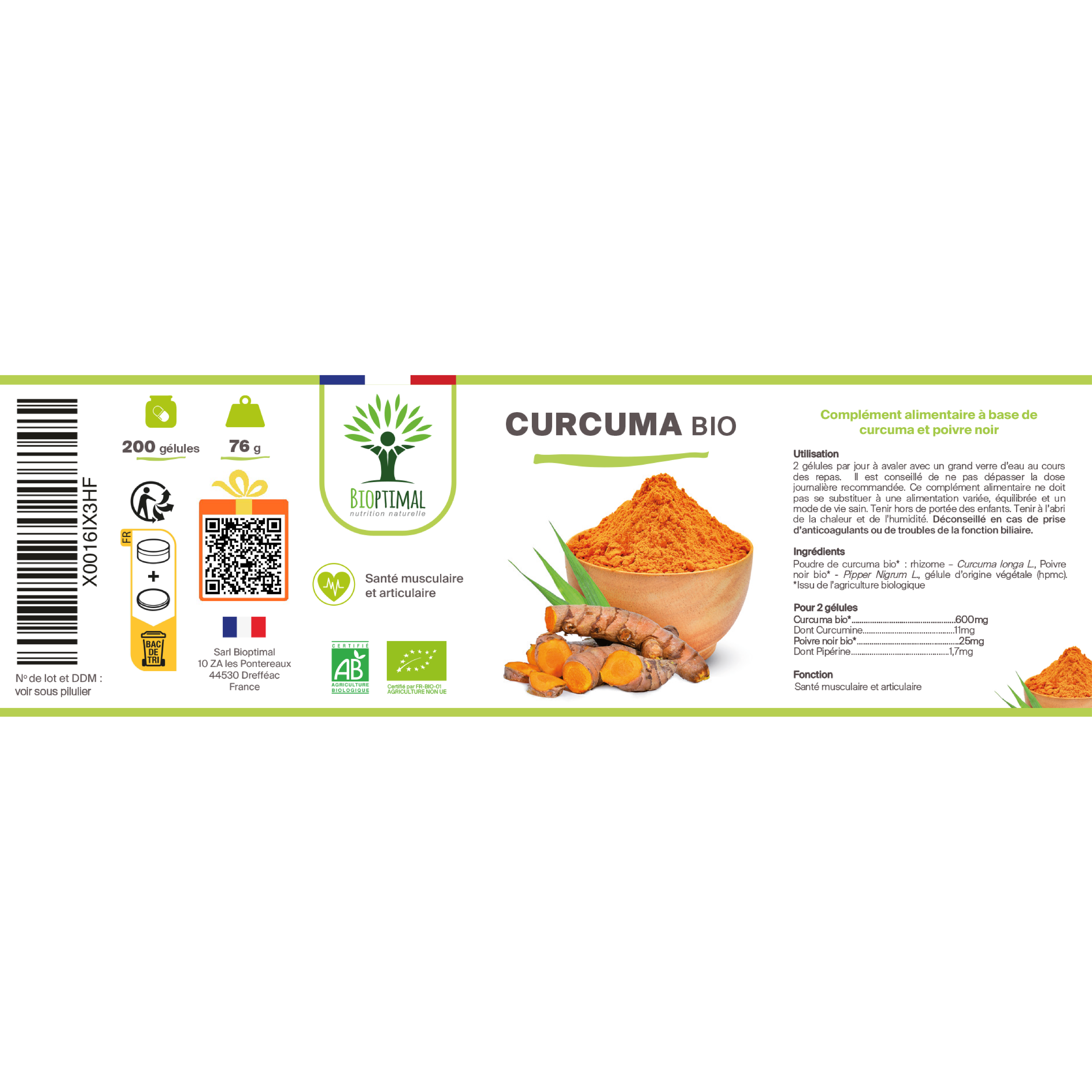 Økologisk Gurkemeie 600mg - 60 kapsler. Dette kosttilskuddet fra Bioptimal inneholder 600 mg økologisk gurkemeie per porsjon, kombinert med sort pepper for økt opptak. Gurkemeie er kjent for sine betennelsesdempende egenskaper og kan støtte leddhelse og fordøyelse. Bioptimals produkter er sertifisert økologiske av Ecocert og produsert uten tilsetningsstoffer, pesticider eller GMO.