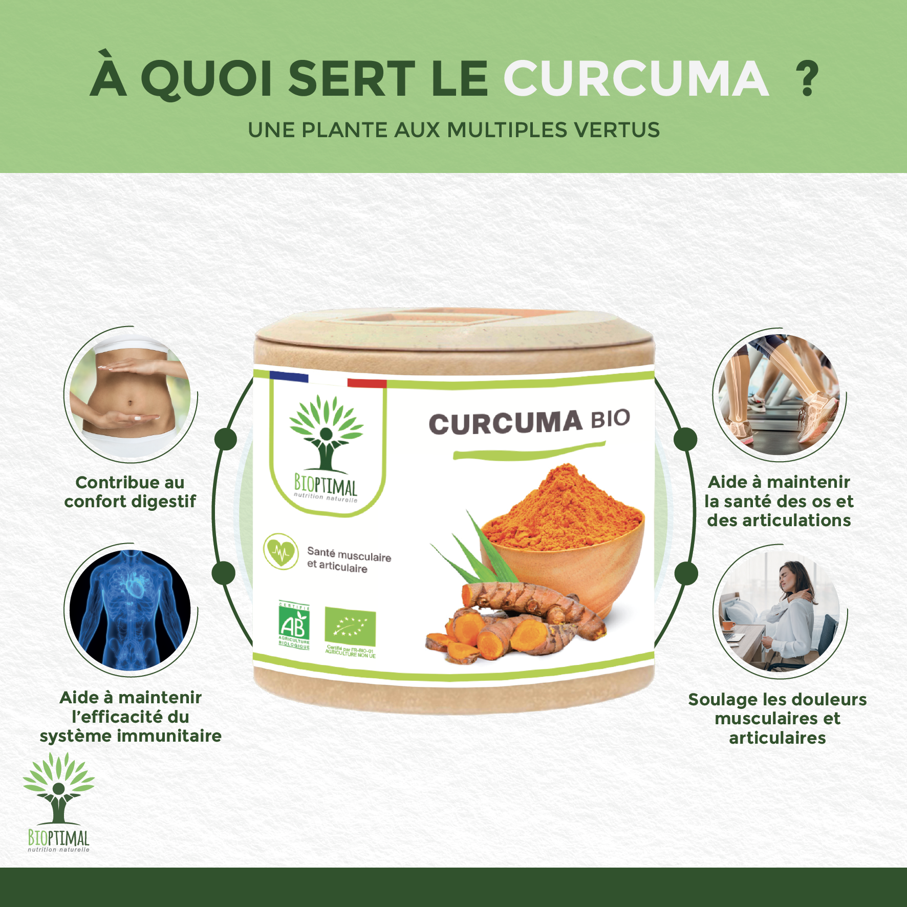 Hver porsjon på to kapsler gir 600 mg gurkemeie, hvorav 11 mg er curcumin, og 25 mg sort pepper, som inneholder 1,7 mg piperin. Curcumin kan bidra til å opprettholde fleksibiliteten i muskler og ledd, samt støtte fordøyelsen ved å fremme leverfunksjon og fettmetabolisme. Piperin fra sort pepper kan forbedre opptaket av curcumin, noe som øker effektiviteten av tilskuddet.