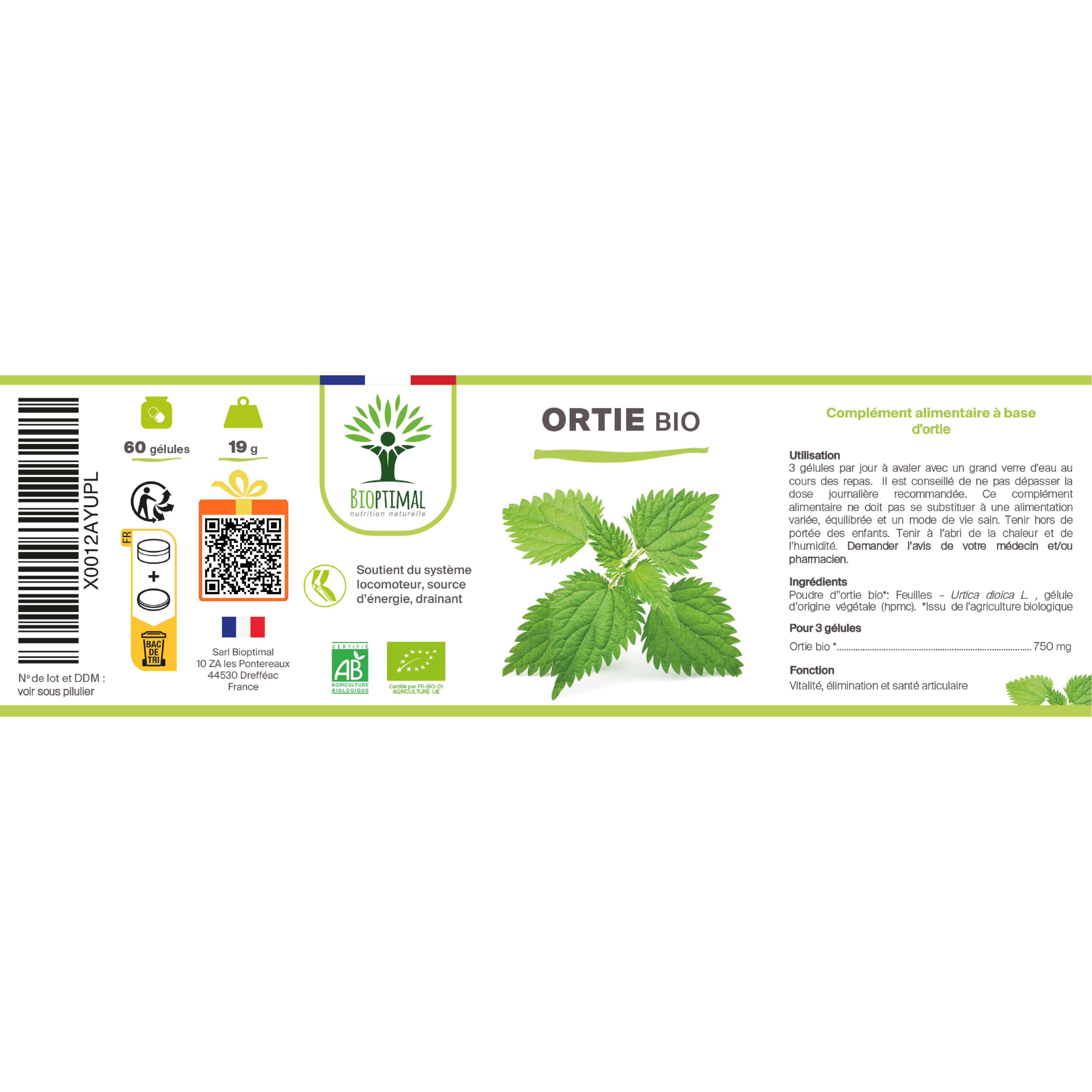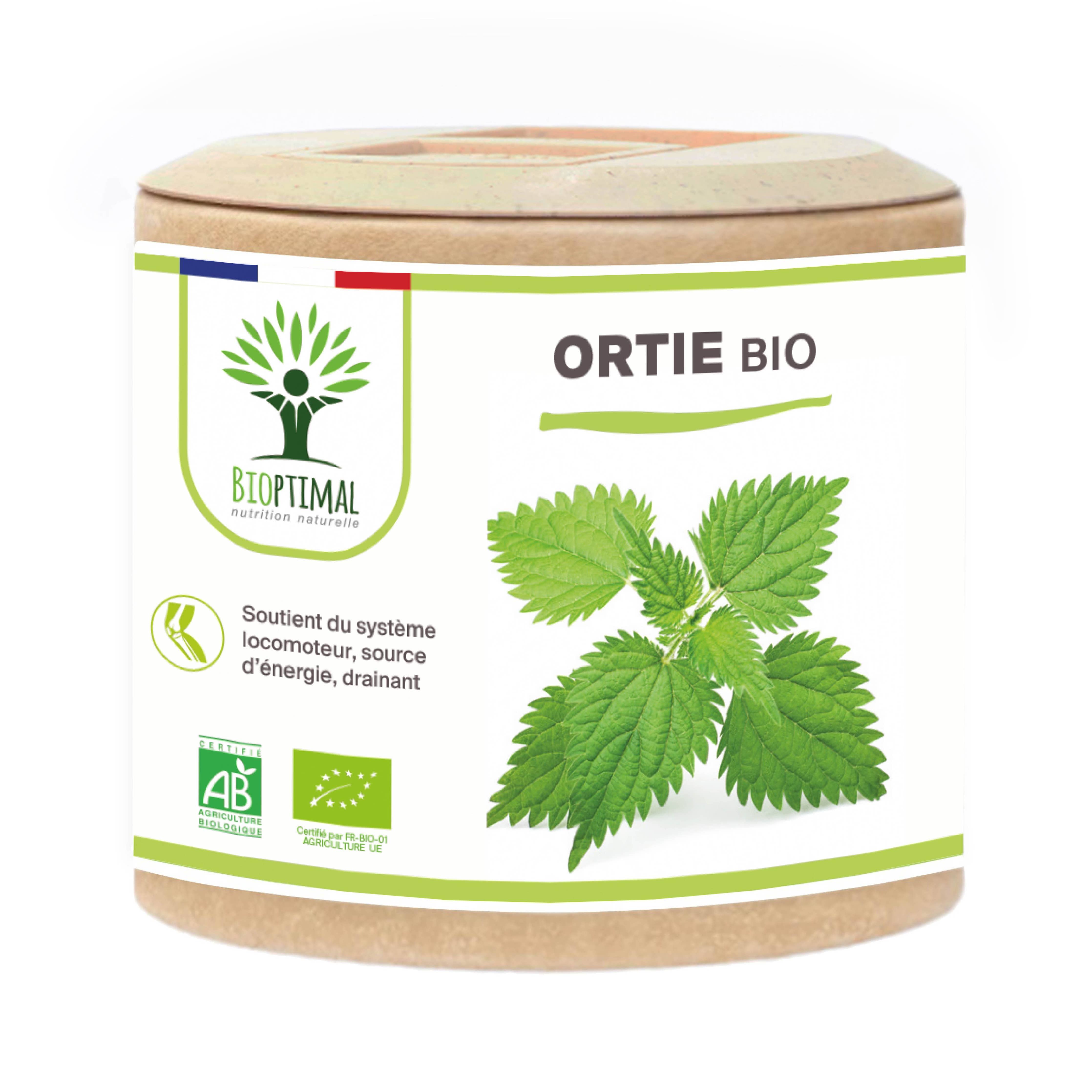 Økologisk Brennesle 60 kapsler. Dette kosttilskuddet fra Bioptimal er laget med 100 % økologisk brennesleblad, og er ideelt for å støtte leddhelse, fremme en sunn hud, samt forbedre blodsirkulasjonen. Kapslene er veganvennlige, uten tilsetningsstoffer og laget i Frankrike.