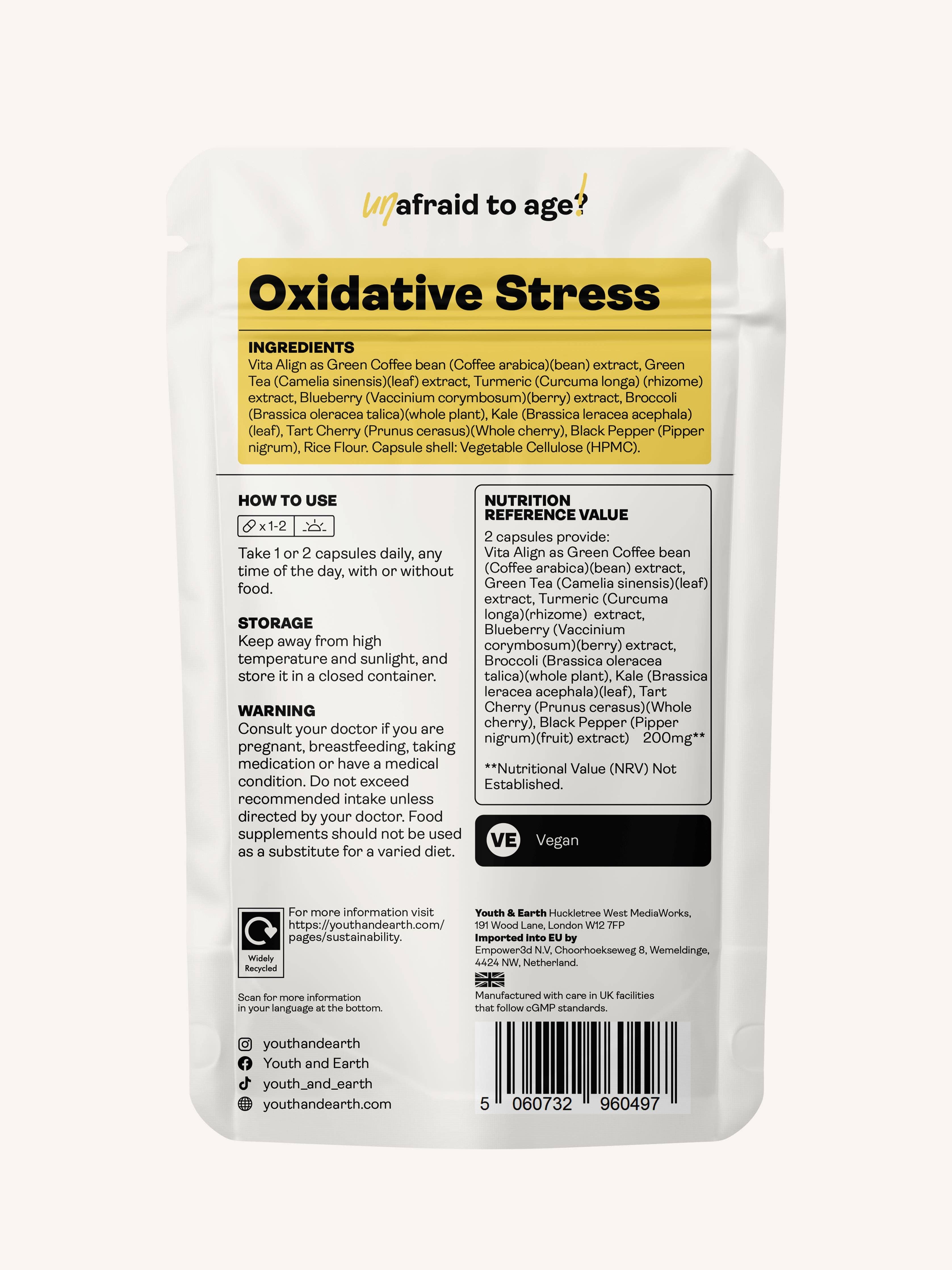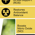 Our Oxidative Stress/nitric oxide formula is expertly formulated with a blend of natural extracts, including green coffee bean, green tea, turmeric, blueberry, broccoli, kale, tart cherry, and black pepper. Each capsule is designed to naturally boost nitric oxide levels in the body, and combat oxidative stress. The increase in nitric oxide promotes better blood flow and endothelial function but also aids in combating oxidative stress and fighting free radicals, protecting your cells from damage. This process is crucial for anti-ageing and longevity, offering a holistic approach to maintaining youthfulness and vitality. Ever wondered, "How do antioxidants protect the body?