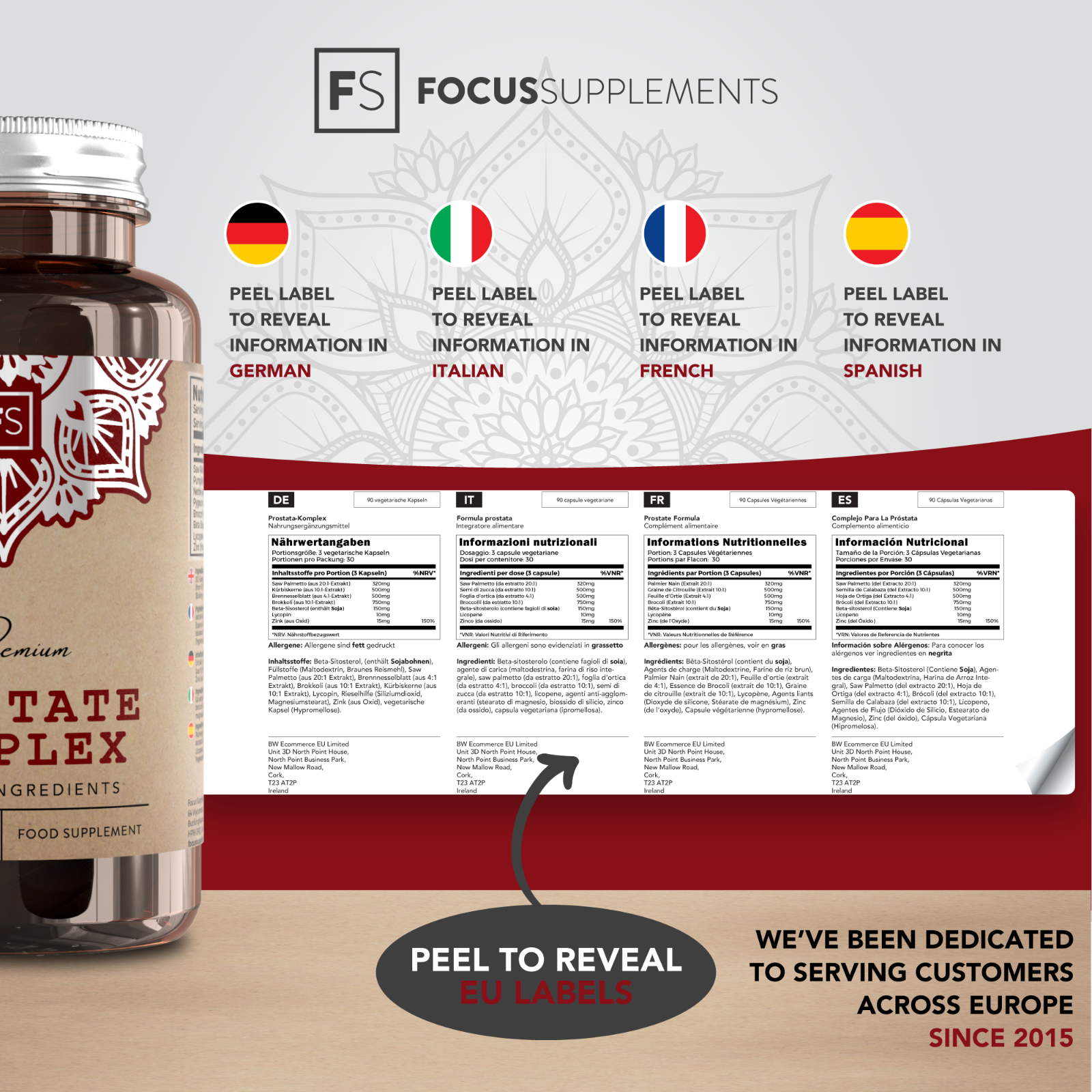 Prostate Complex 90 kapsler. Dette kosttilskuddet fra Focus Supplements kombinerer en kraftig blanding av naturlige ingredienser for å støtte prostatahelse og generell vitalitet. Med nøkkelingredienser som gresskarfrø, nesleblad, lykopen og sink, gir denne formelen daglig støtte for optimal prostatakapasitet og velvære. Produktet er egnet for vegetarianere og veganere, er fri for meieriprodukter og gluten, og inneholder ingen kunstige fargestoffer eller smakstilsetninger.