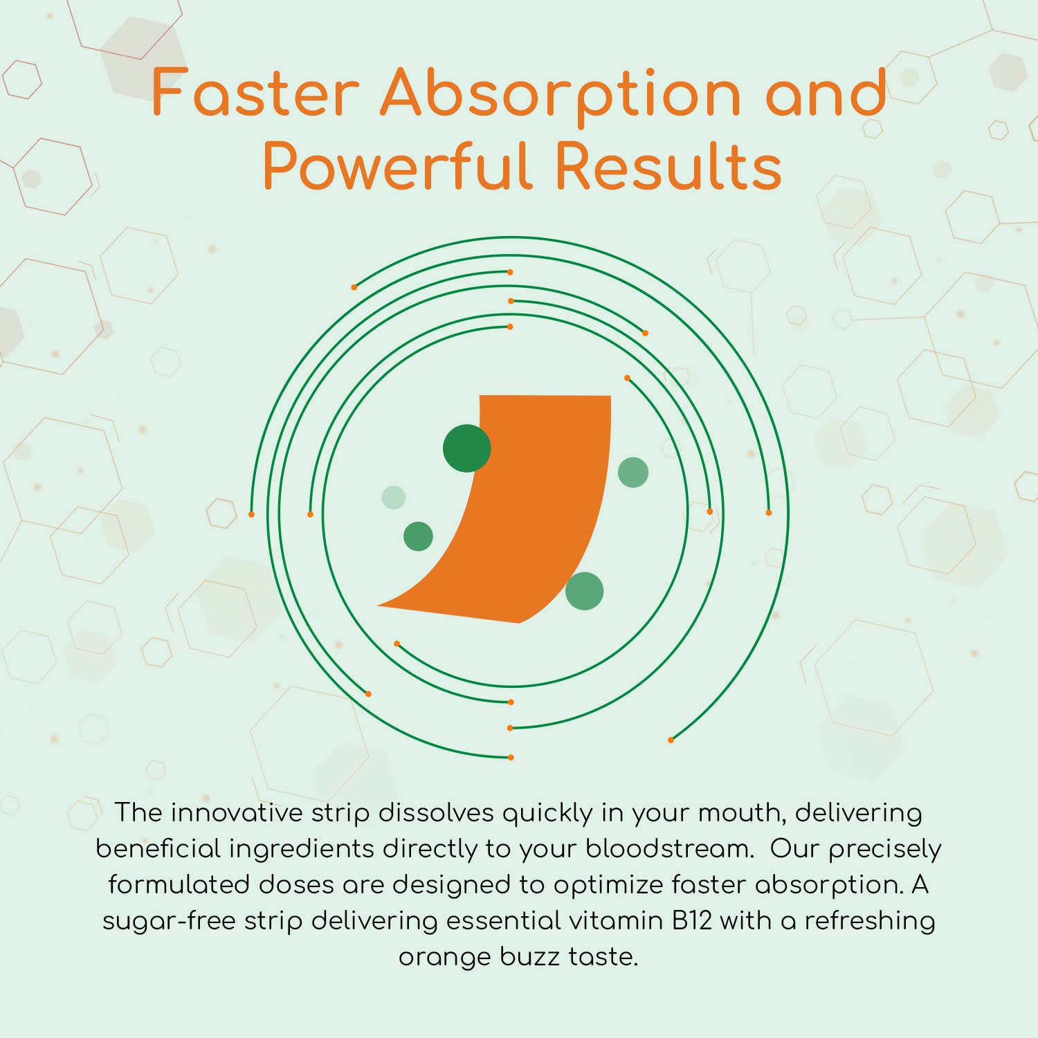 Vitamin B12 kan støtte kroppens energiomsetning ved å bidra til normal funksjon av nervesystemet, samt redusere tretthet og utmattelse. Produktet kan være spesielt gunstig for personer med vitamin B12-mangel, vegetariske eller veganske kosthold, og eldre som har nedsatt evne til å absorbere B12 fra mat. Hver strip gir rask og effektiv absorpsjon, noe som kan bidra til å opprettholde normal kognitiv funksjon og mental helse.