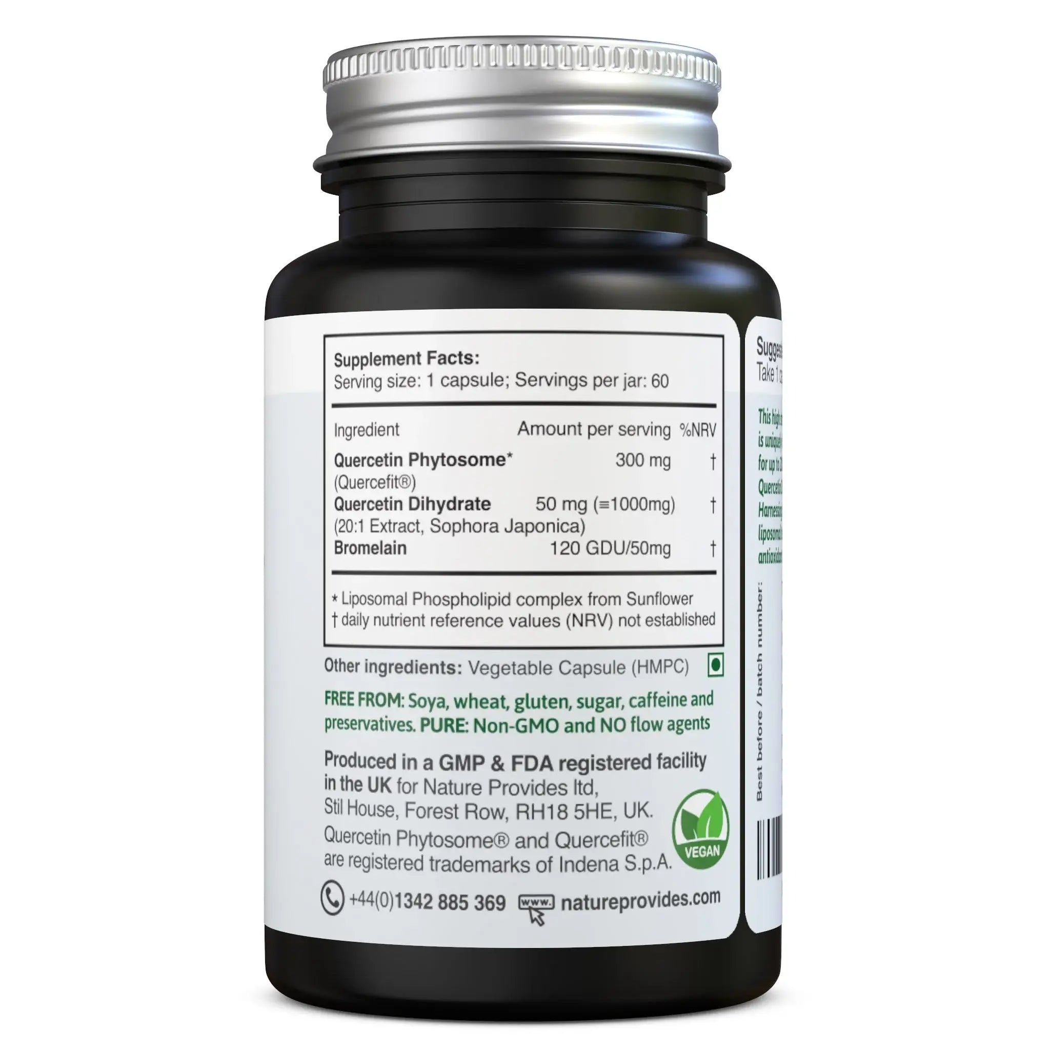 Quercetin Phytosome, Quercetin Dihydrate, Bromelain, Vegetabilsk kapsel ( HPMC)