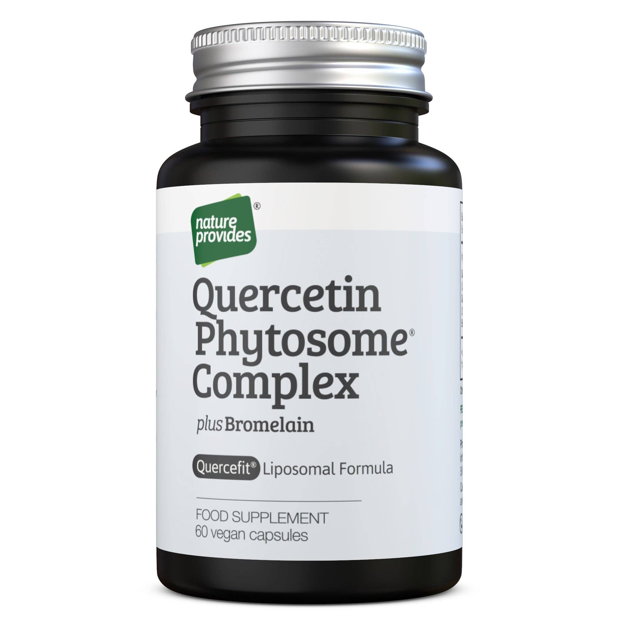 Hver kapsel inneholder 300 mg Quercetin Phytosome® (Quercefit®), 50 mg Quercetin Dihydrate (20:1 ekstrakt, tilsvarende 1000 mg) og 50 mg bromelain (120 GDU). Quercetin kan stabilisere mastcellemembraner, redusere histaminfrigjøring og lindre allergisymptomer. Dets antiinflammatoriske egenskaper kan støtte lungehelsen og redusere oksidativt stress. I tillegg kan quercetin gi antioksidantbeskyttelse mot oksidativ skade forårsaket av virus og bidra til å blokkere viral inngang, en kritisk fase i virusreplikasjon. Bromelain kan forbedre absorpsjonen av quercetin og gi ytterligere antiinflammatoriske fordeler.