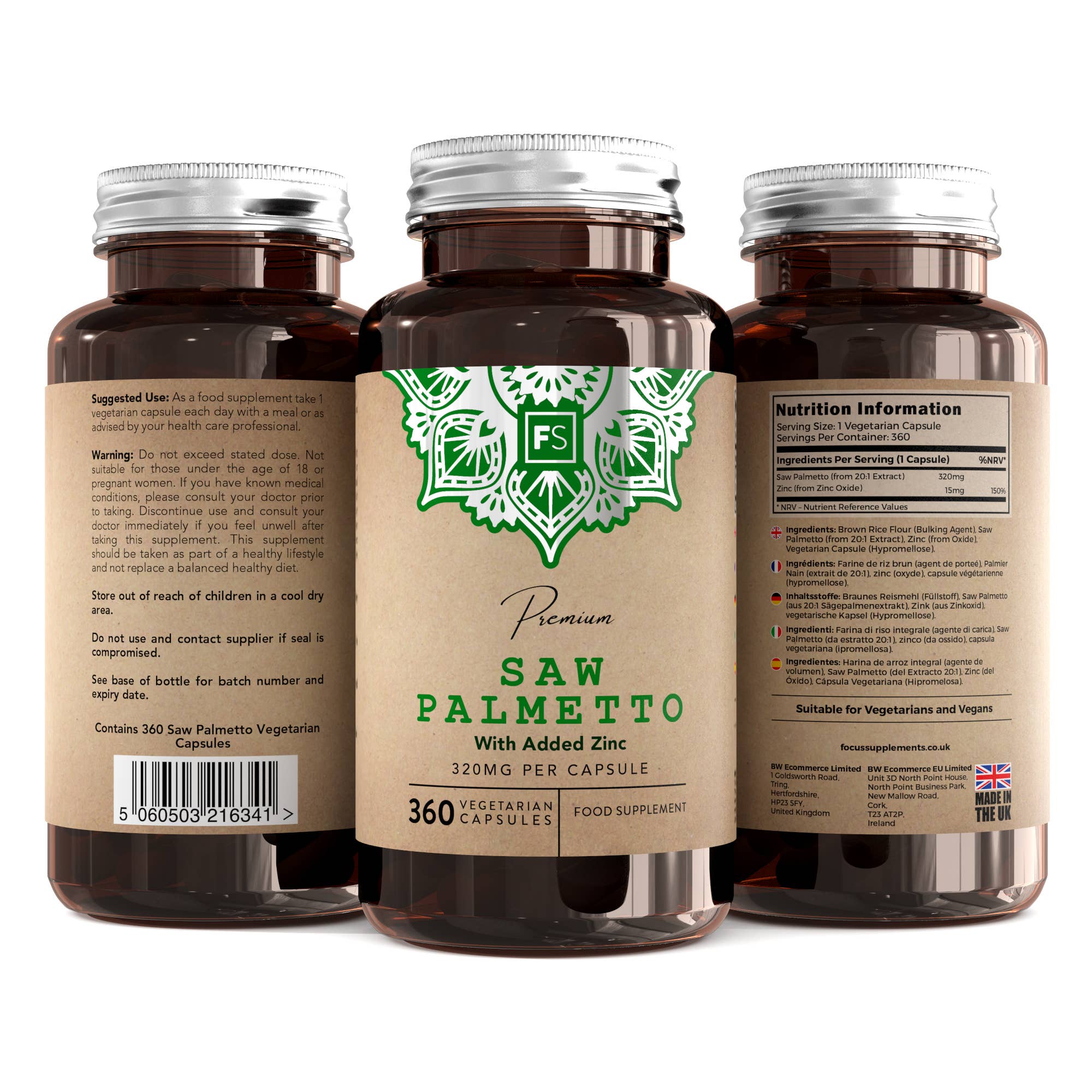 Saw Palmetto 20:1 Ekstrakt 320 mg 360 kapsler. Dette kosttilskuddet fra Focus Supplements inneholder 320 mg høykonsentrert Saw Palmetto-ekstrakt i et 20:1-forhold, noe som tilsvarer 6400 mg tørket frukt per kapsel. Saw Palmetto er kjent for sin evne til å støtte prostatahelsen og hormonbalansen hos menn, samtidig som det kan bidra til å redusere hårtap. Med naturlige fettsyrer og plantesteroler kan dette ekstraktet fremme urinveisfunksjonen og bidra til generell reproduktiv helse.