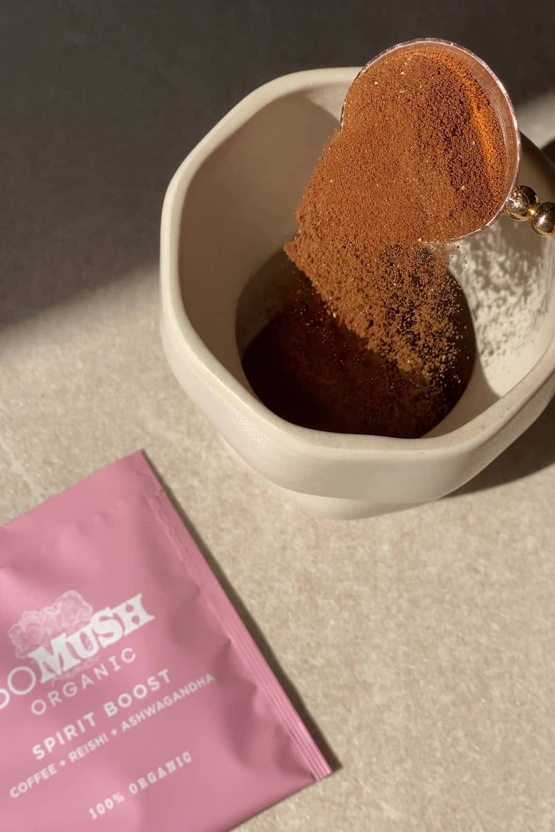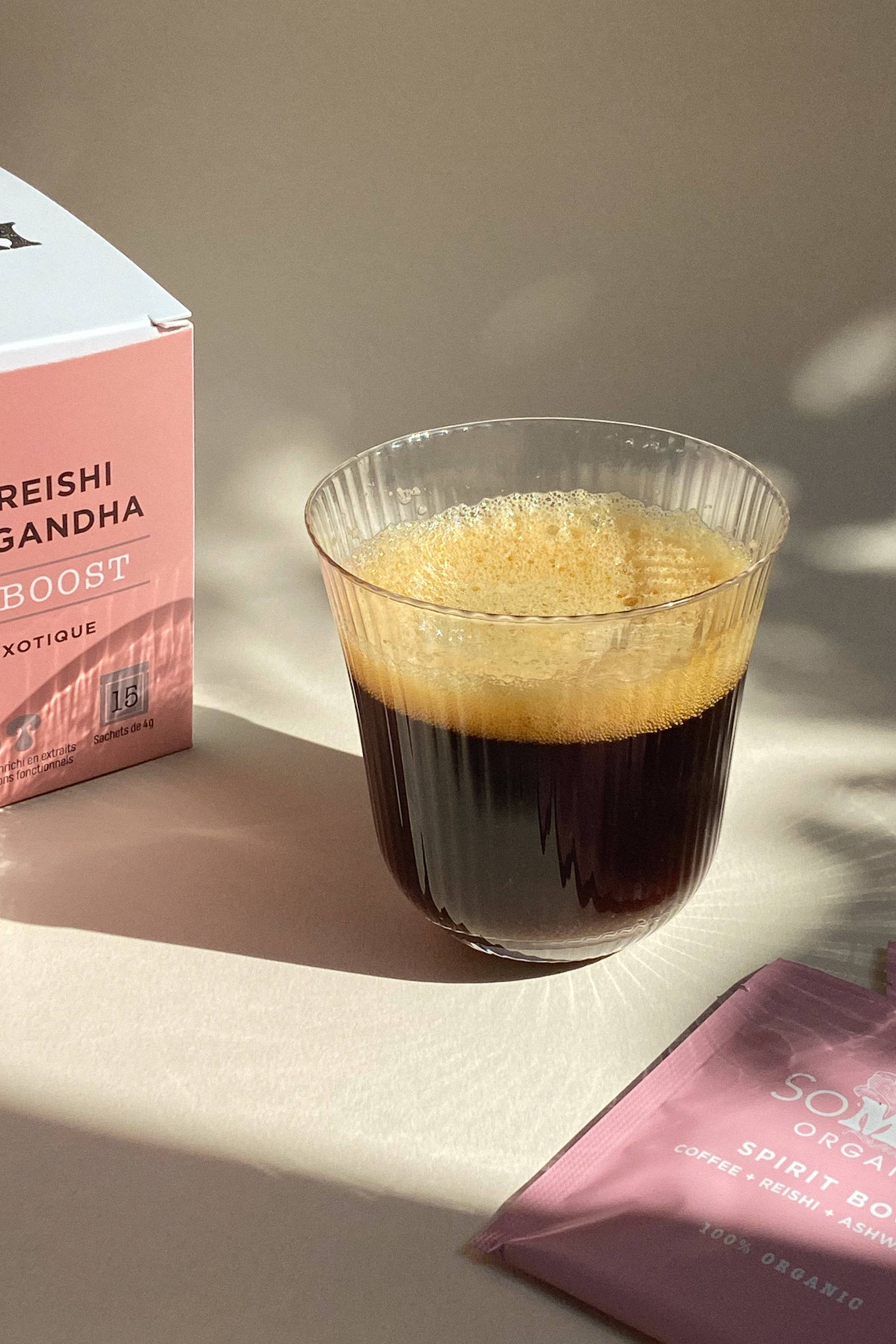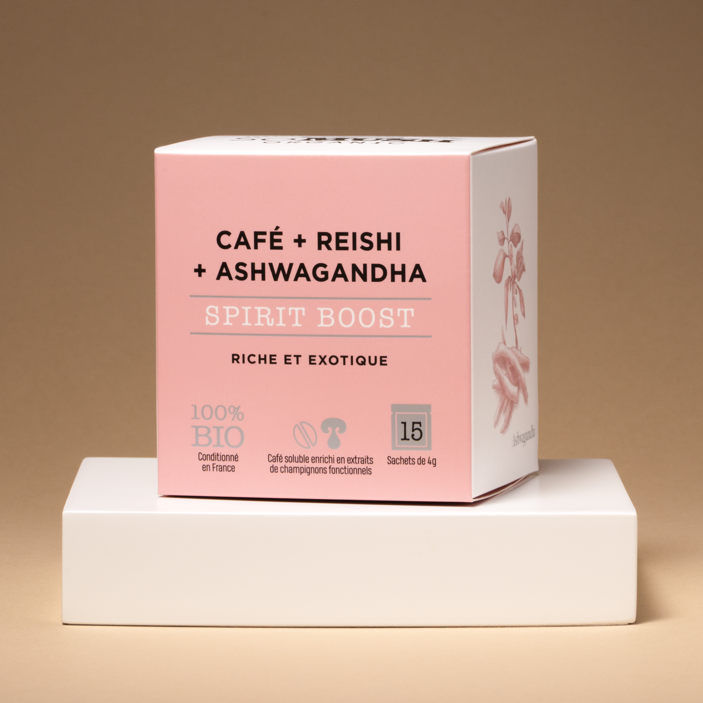 Økologisk Arabica-kaffe, økologisk reishi-sopp (Ganoderma lucidum), økologisk ashwagandha (Withania somnifera).