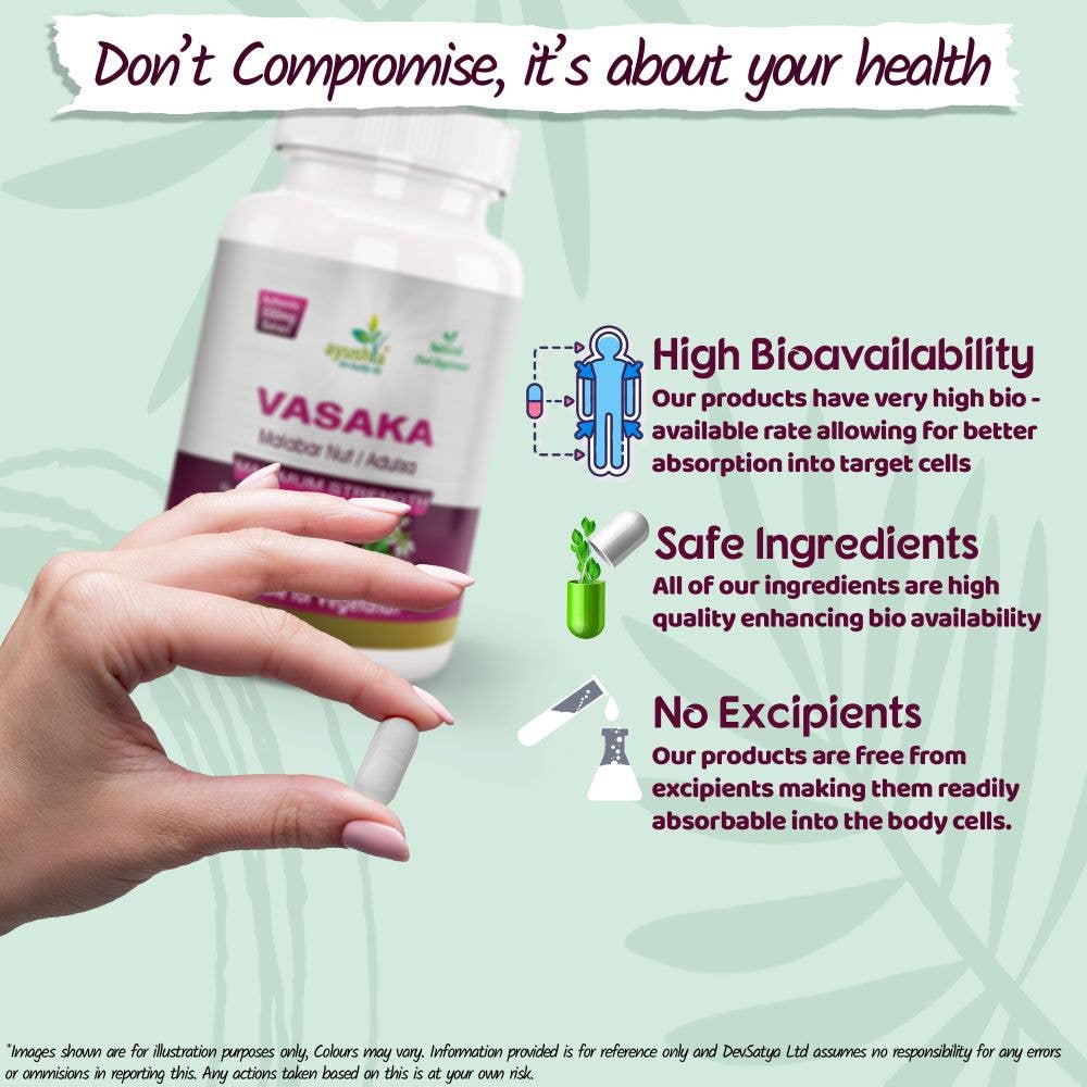 Fremmer generell helse og velvære – Ved å støtte luftveiene og styrke immunforsvaret kan Vasaka bidra til økt energi og bedre livskvalitet. Dens antioksidantegenskaper kan også beskytte cellene mot skader forårsaket av frie radikaler.