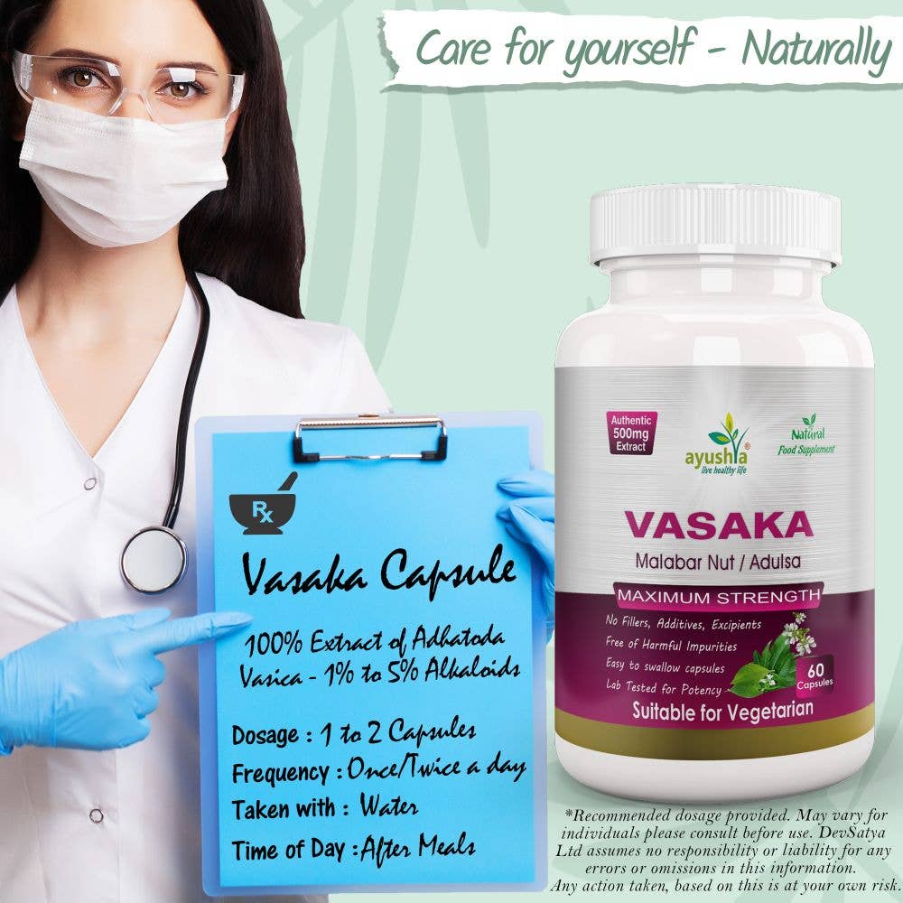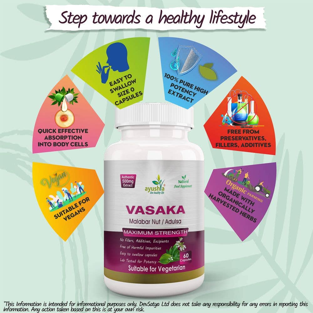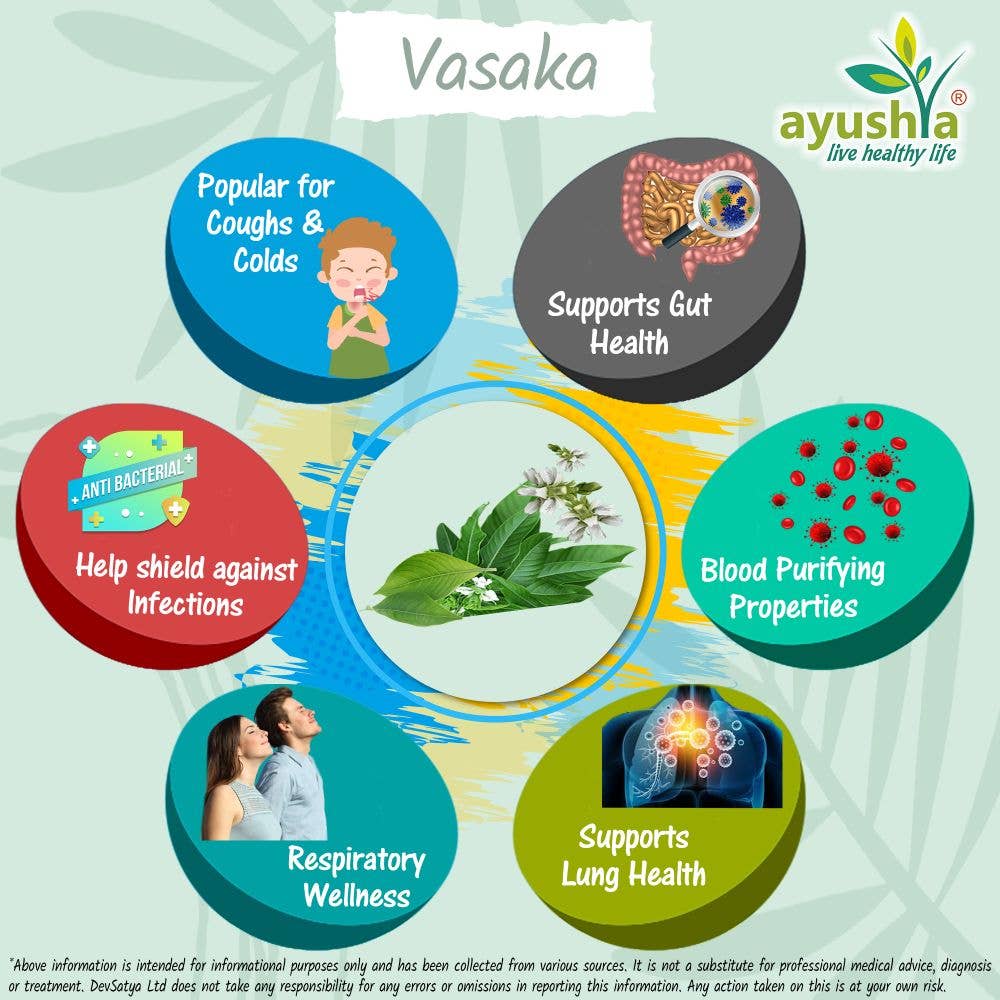 Vasaka inneholder alkaloider som vasicinone og vasicine, som har bronkodilaterende og slimløsende egenskaper. Disse forbindelsene kan bidra til å utvide luftveiene, lette pusten og redusere hoste. I tillegg har Vasaka antiinflammatoriske og antibakterielle egenskaper, noe som kan bidra til å bekjempe infeksjoner og redusere betennelse i luftveiene. Regelmessig inntak kan også bidra til å styrke immunforsvaret og beskytte kroppen mot oksidativt stress.