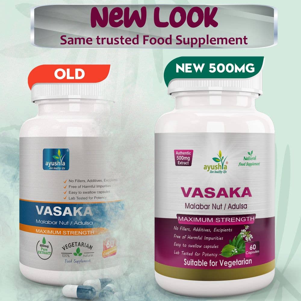Vasaka 60 kapsler med styrke 500 mg fra Aushadh er et kosttilskudd basert på bladene fra Justicia adhatoda, en urt kjent for sine gunstige effekter på luftveiene. Vasaka har vært brukt i tradisjonell medisin i århundrer for å behandle hoste, bronkitt og astma. Aushadhs formulering sikrer høy biotilgjengelighet og inneholder ingen unødvendige tilsetningsstoffer, noe som gir et rent og effektivt produkt. Dette tilskuddet kan bidra til å lindre luftveisplager, støtte immunforsvaret og fremme generell velvære.
