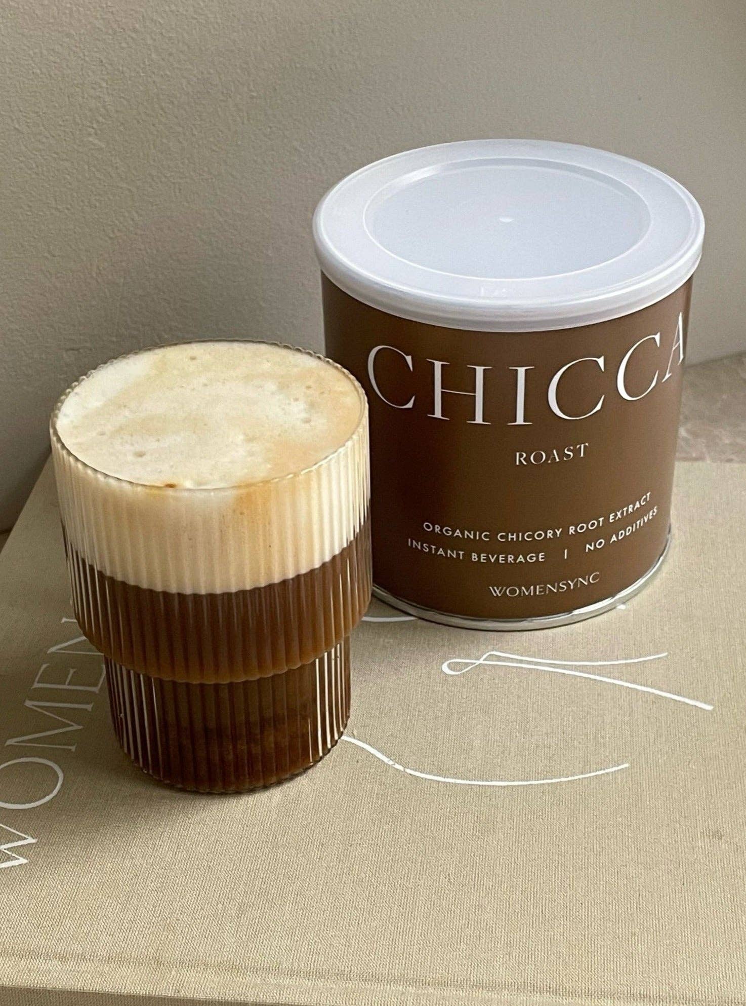 Chicca Roast EKO 150g. Dette koffeinfrie alternativet til kaffe fra Womensync er laget av 100 % rostad cikoriarot og er perfekt for deg som ønsker å redusere koffeinintaket, spesielt ved hormonelle ubalanser eller før graviditet. Chicca Roast er naturlig rik på prebiotisk fiber (inulin) og har en smak som minner om en blanding av kaffe og sjokolade. Den er økologisk produsert og fri for tilsetningsstoffer, og kan nytes med varmt vann eller melk for en fyldig og smakfull drikk.